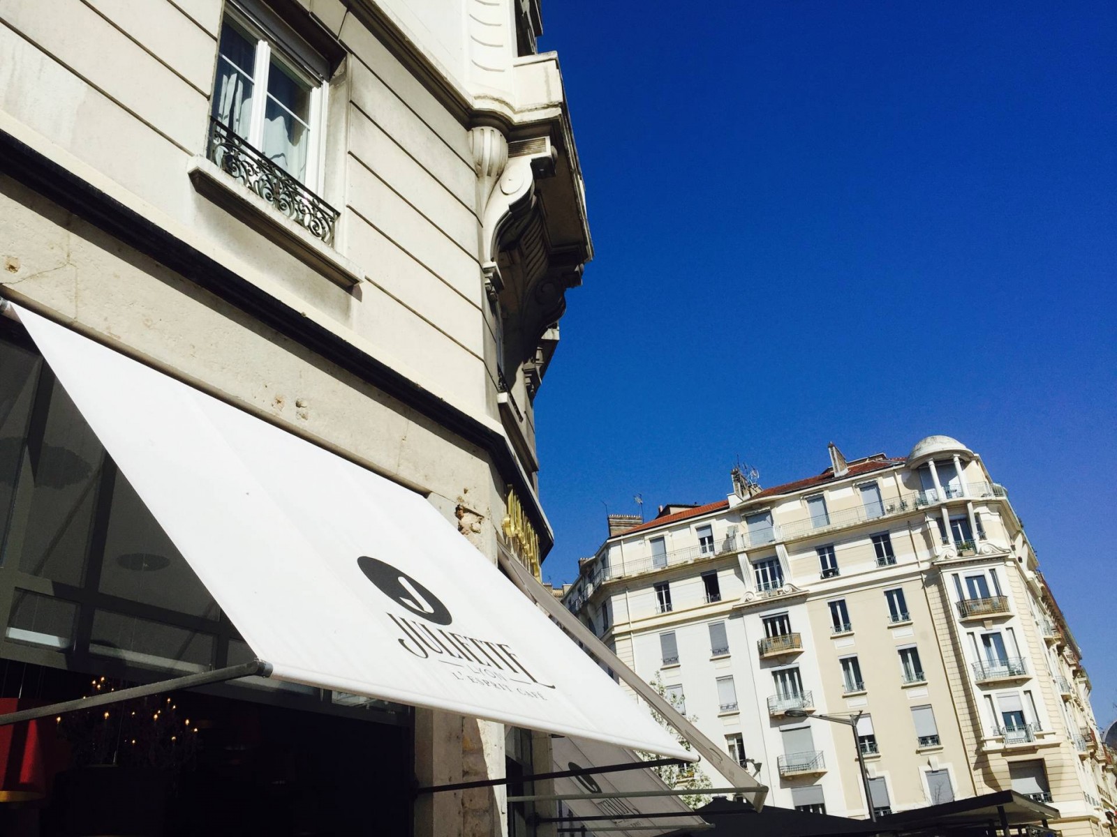J’étais justement à Lyon pour Pâques et le soleil était bien sorti le samedi. C’était le temps idéal pour ce premier lunch de printemps entre copines. On a opté pour le sixième arrondissement vu qu’on y était toutes les deux et c’est au Café Juliette, vers la gare des Brotteaux, qu’on a atterri. Je connaissais cet établissement plutôt comme un bar à cocktails le soir, mais je n’avais jamais déjeuné au Café Juliette. Verdict, on a bien fait !