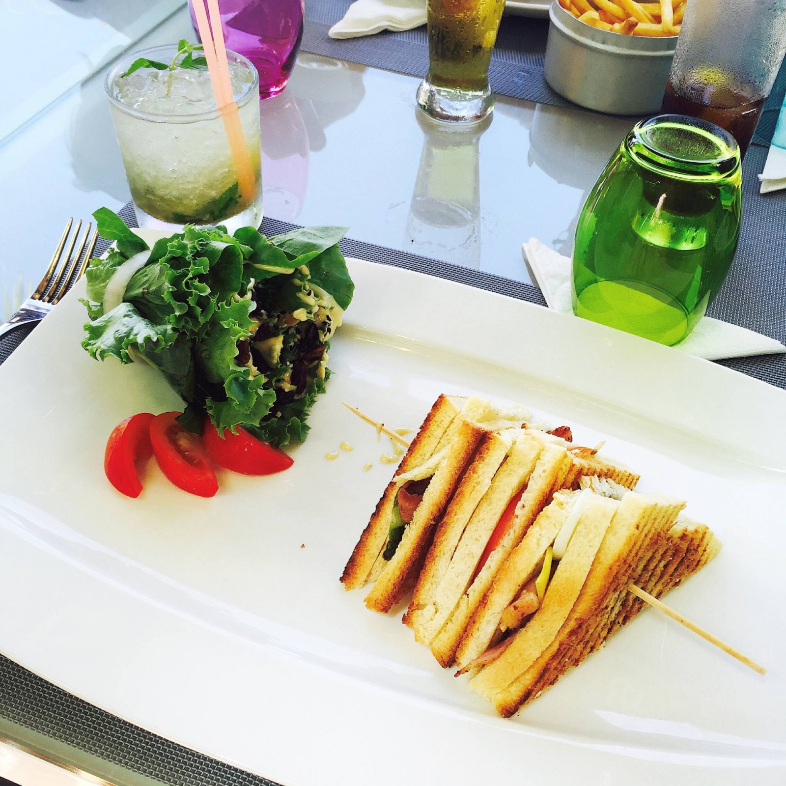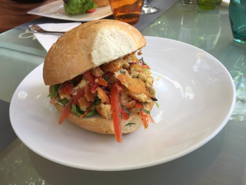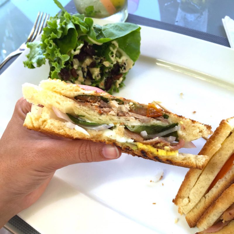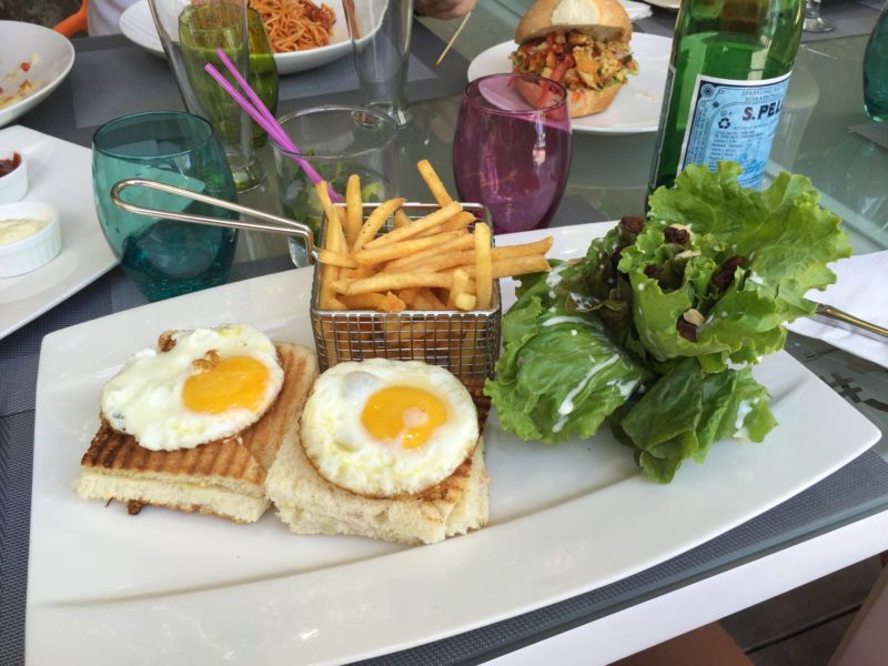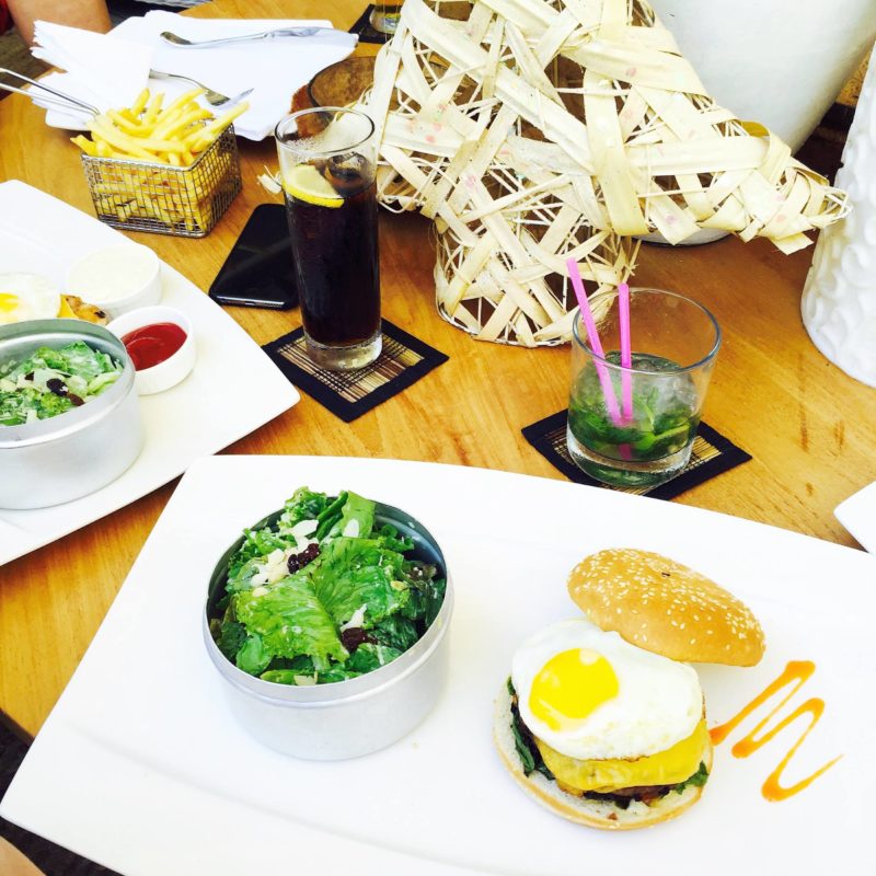 Alors, pour commencer, le restaurant du Mystik Lifestyle Hotel s’appelle Le #36. C’est la première adresse que nous avons testée sur place. Après le vol et la traversée de l’île, nous avons sorti nos affaires dans la maison louée (dont j’ai parlé dans un article ici), et le temps de chercher une plage, il était déjà 14h et on avait faim ! Le Mystik Lifestyle Hotel est le premier hôtel à Mont-Choisy, vers la plage publique. La décoration et la piscine donnaient envie, on est entré ! Et c’était plutôt une très belle surprise. La décoration est moderne, colorful, fraîche et très sympa. Il y a de grandes tables qui appellent à la convivialité et la piscine est exactement de la même couleur que la mer, c’est magique ! Côté cocktails, ils sont juste DE-LI-CIEUX ! Dans les assiettes, on est ravi ! Tout est très bon. Il y a des burgers, des sandwichs clubs, des plats aussi. Et les desserts sont vraiment très bons. Mais au lieu de vous en parler pendant des heures, je vais vous montrer quelques photos ! Surtout qu’on y est allé deux fois, le premier jour et le dernier jour, donc on a bien expérimenté la carte ! Pour un cocktail/plat/dessert, il faut compter environ 15€.