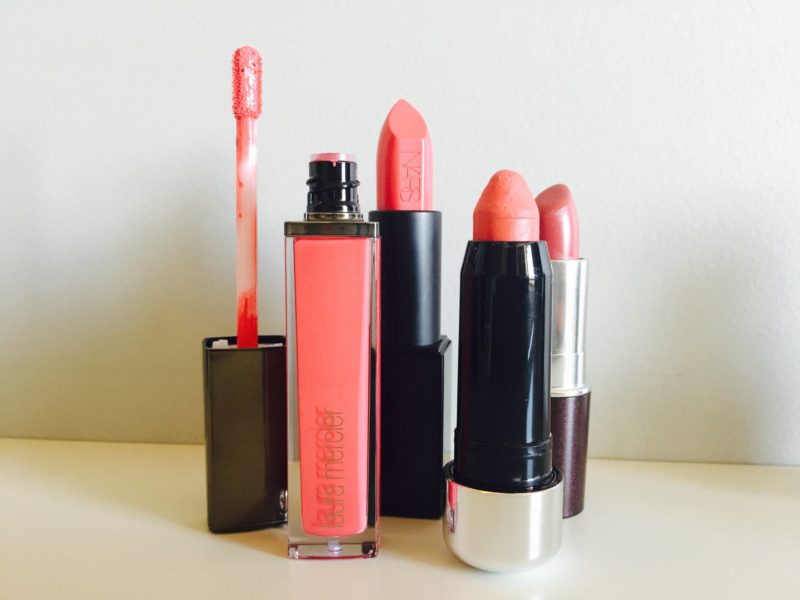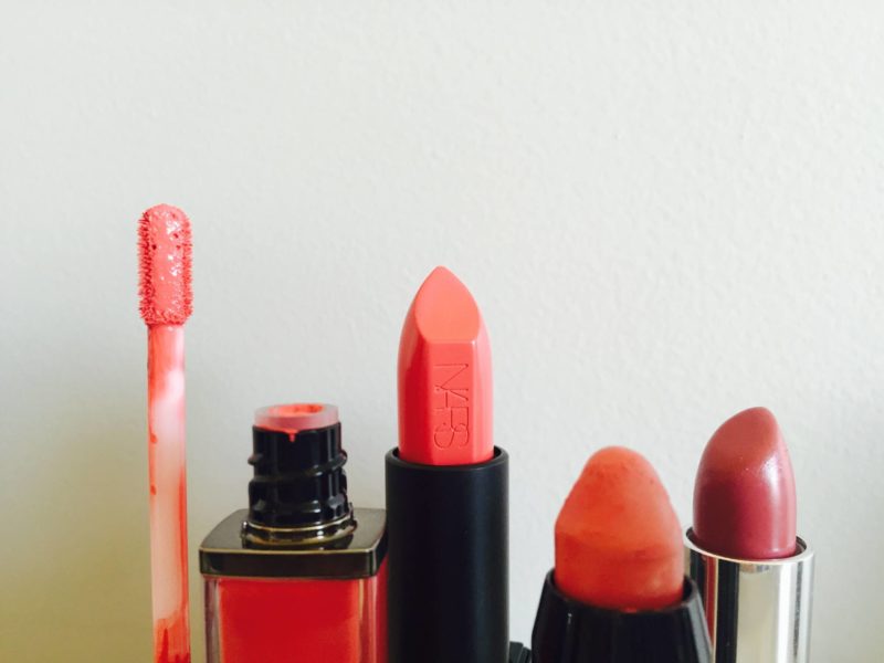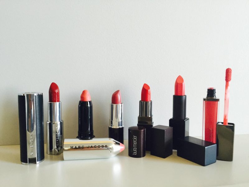 Depuis ce premier essai qui m’a convaincu, j’ose un peu plus ! L’hiver dernier, vous m’avez vu porter du rouge vif, du rouge foncé, du rose vieilli ou encore du nude. Pour l’été, j’avais craqué sur de nouvelles teintes encore jamais expérimentées : un rose clair vif et mat, un corail, un rouge vif et mat, un rose vieilli et plusieurs autres. J’avais donc envie de partager avec vous mes rouges à lèvres préférés et de vous dire pourquoi. Je ne suis pas fidèle à une marque en particulier, ce sont plutôt les couleurs et les textures qui ont le dernier mot ! Donc, voilà mes petits favoris :