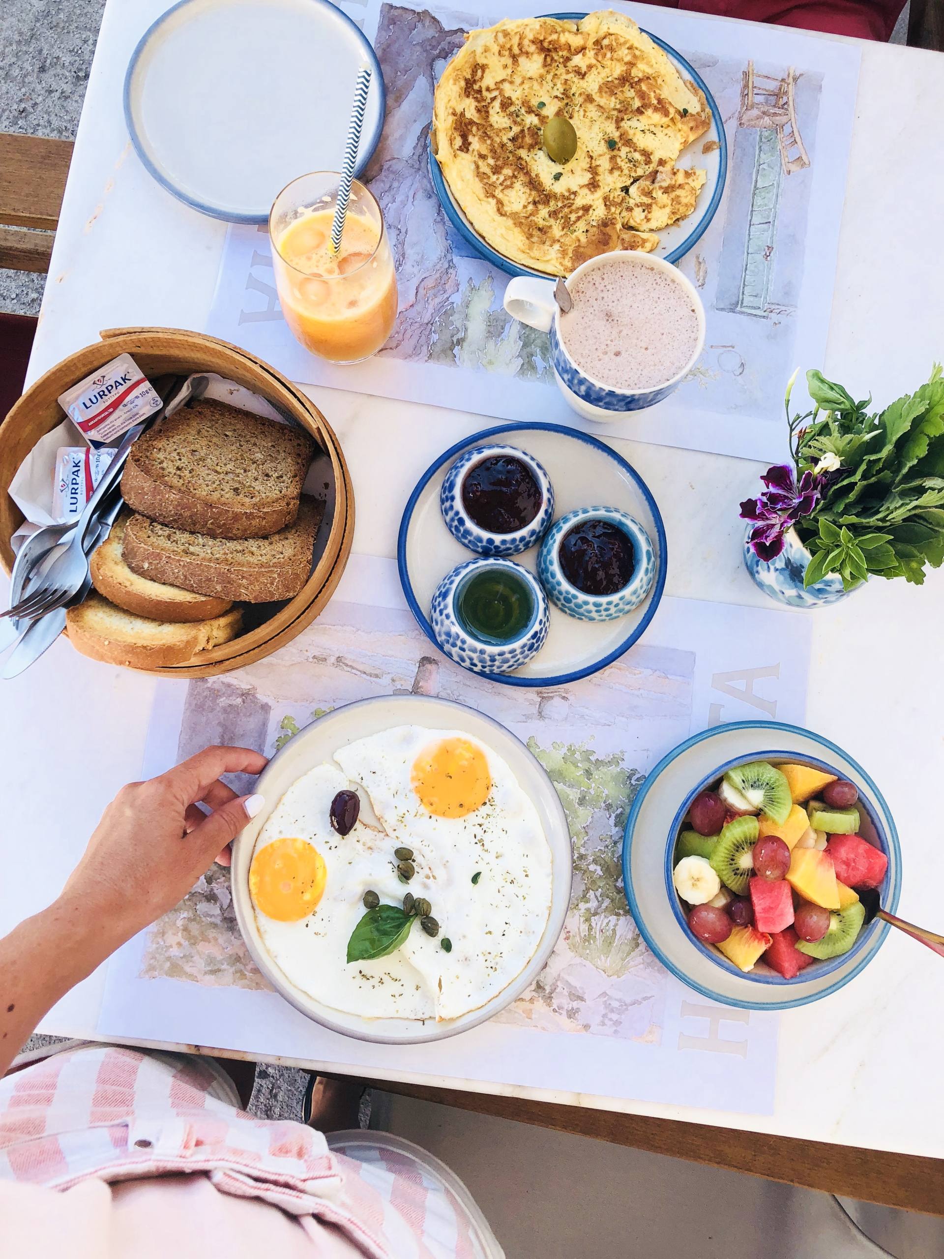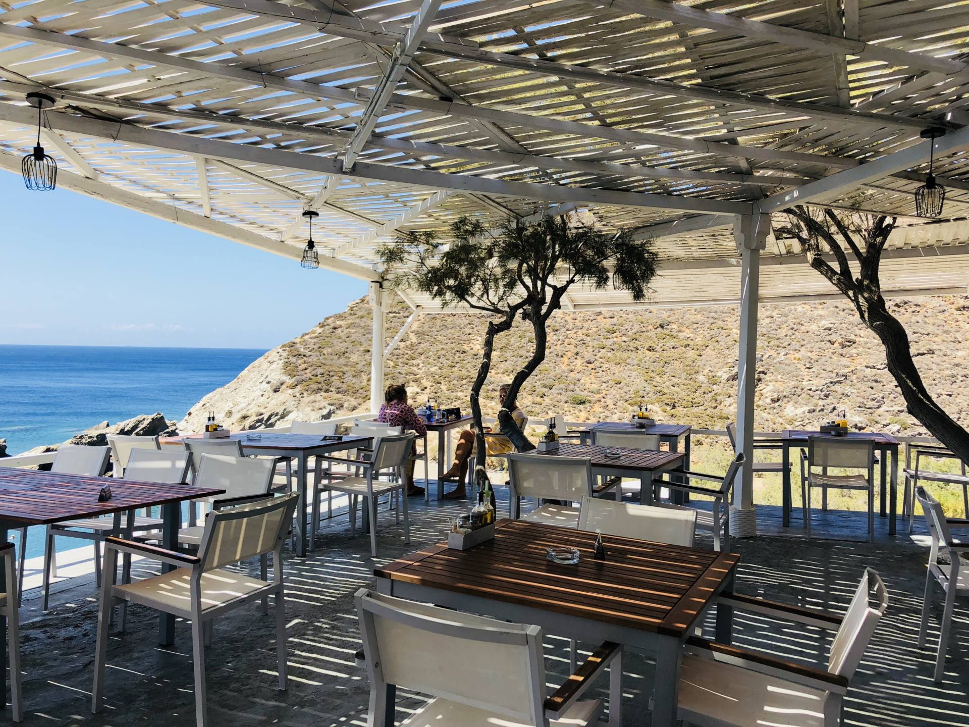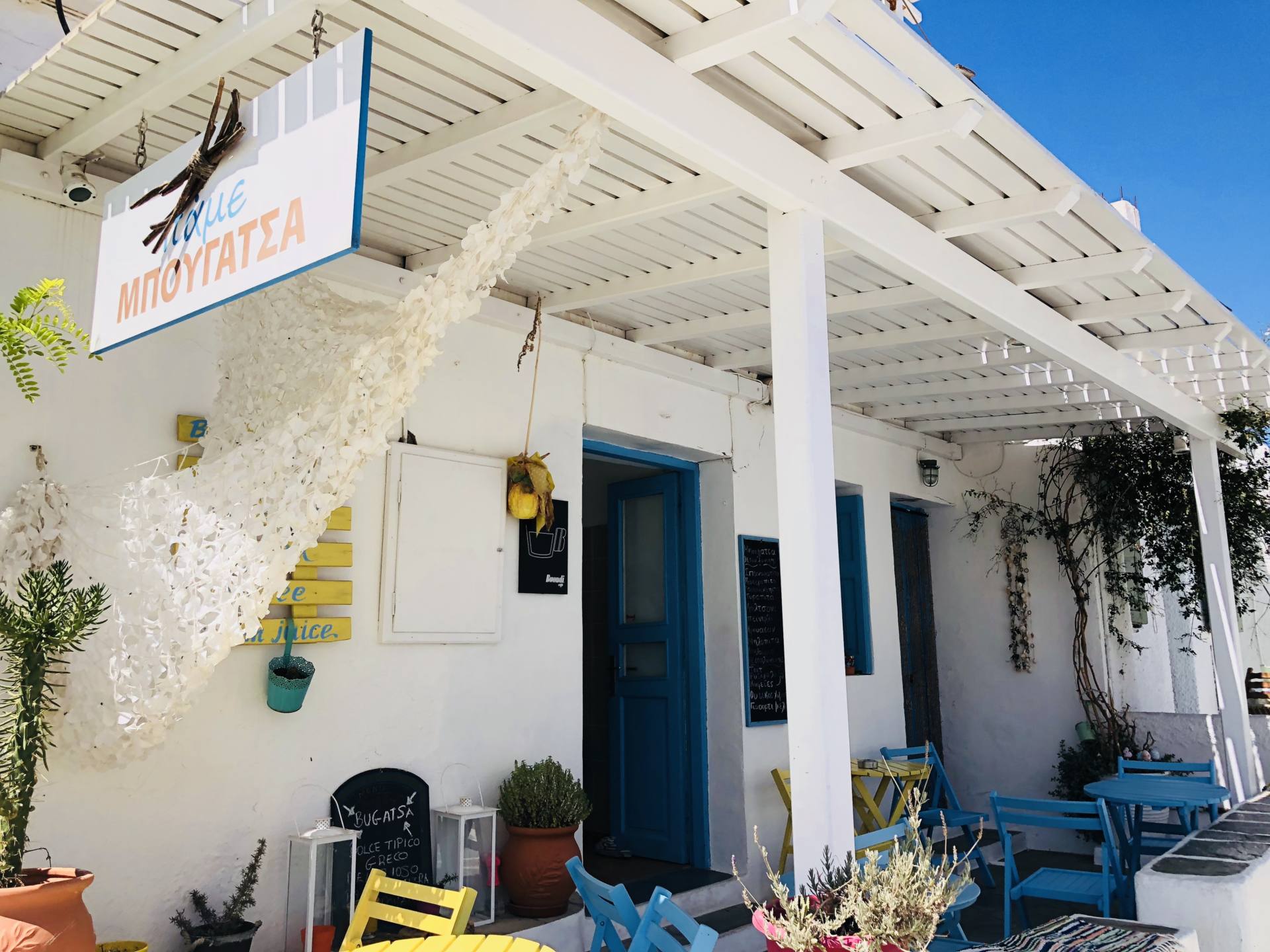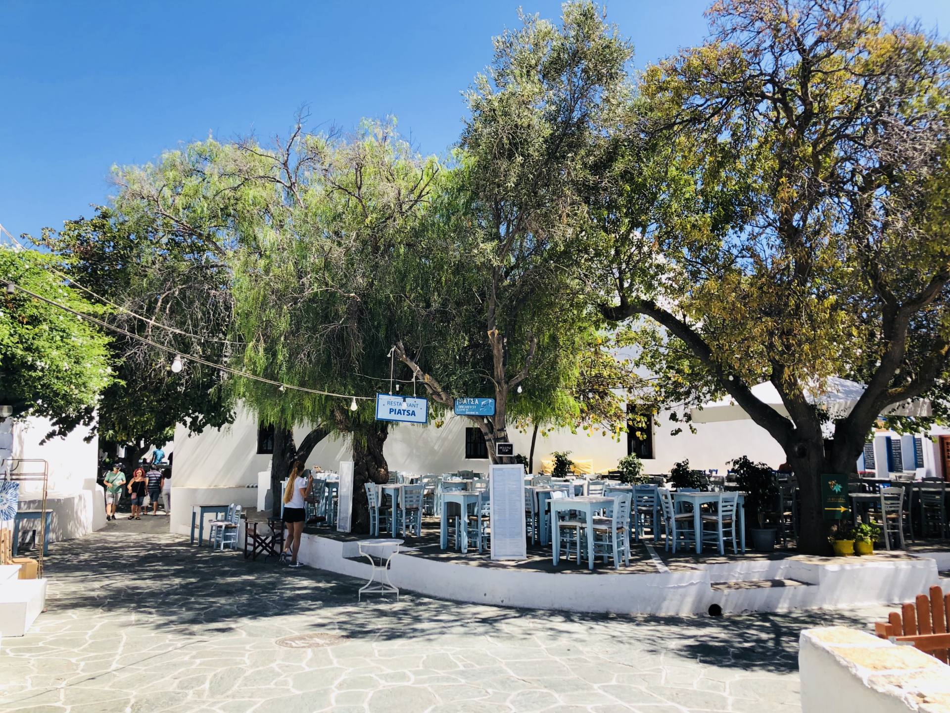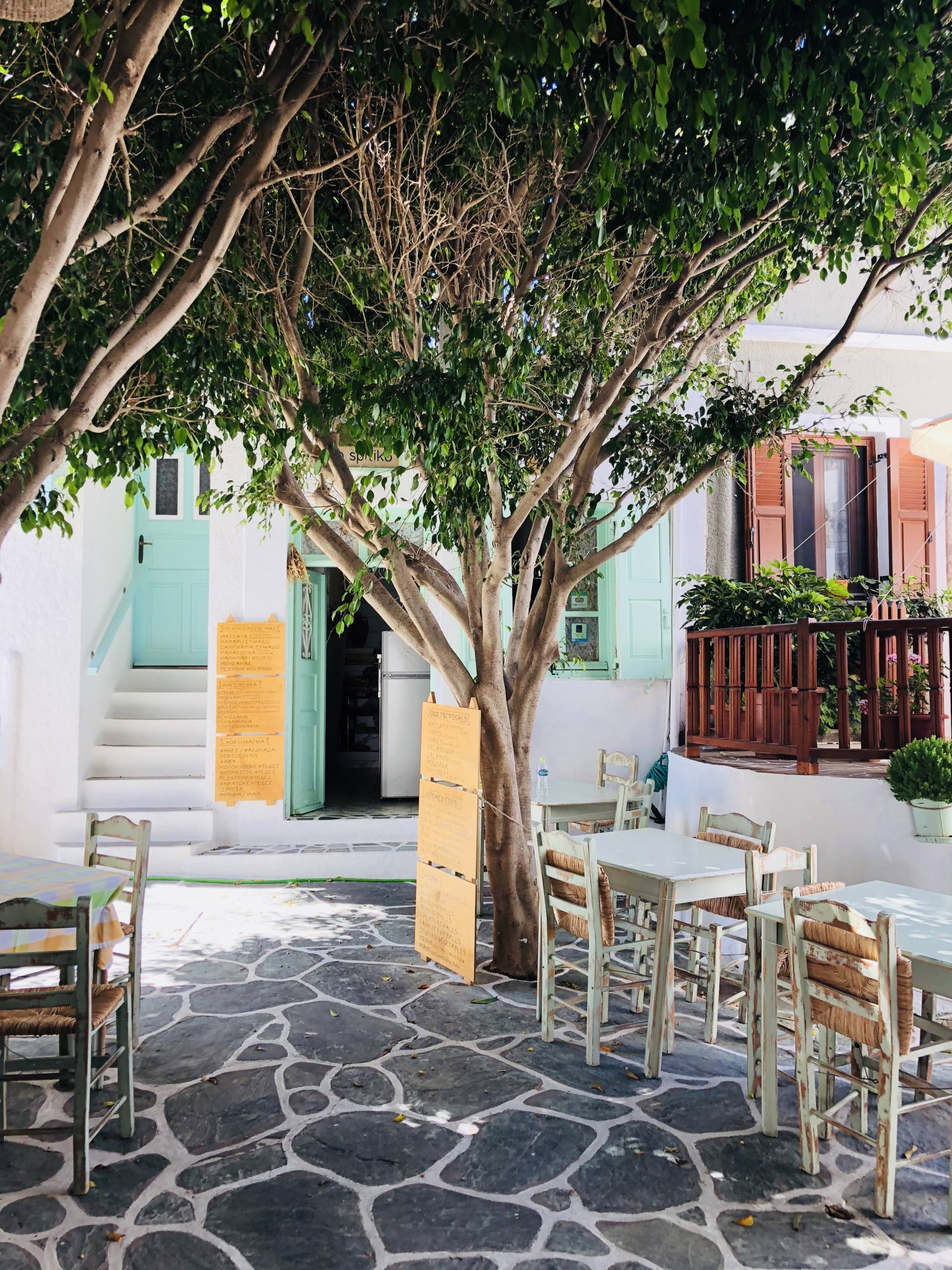 Pour un petit-dèj ou un lunch dans Chora : H Moynta ! C’est une adresse sur la place où se dresse la mairie. Je ne trouve pas sur TripAdvisor mais vous ne pourrez pas la louper, il n’y en a qu’une de terrasse.Il y a une petite terrasse, mais à l’arrière, un grand jardin. Le premier jour, on a petit-déjeuner là-bas. On a tellement aimé qu’on y est retourné ! Omelette, oeufs, salades de fruit, jus, tartines, tout est très frais et délicieux ! Vous pouvez même bruncher et luncher ! Une tuerie !