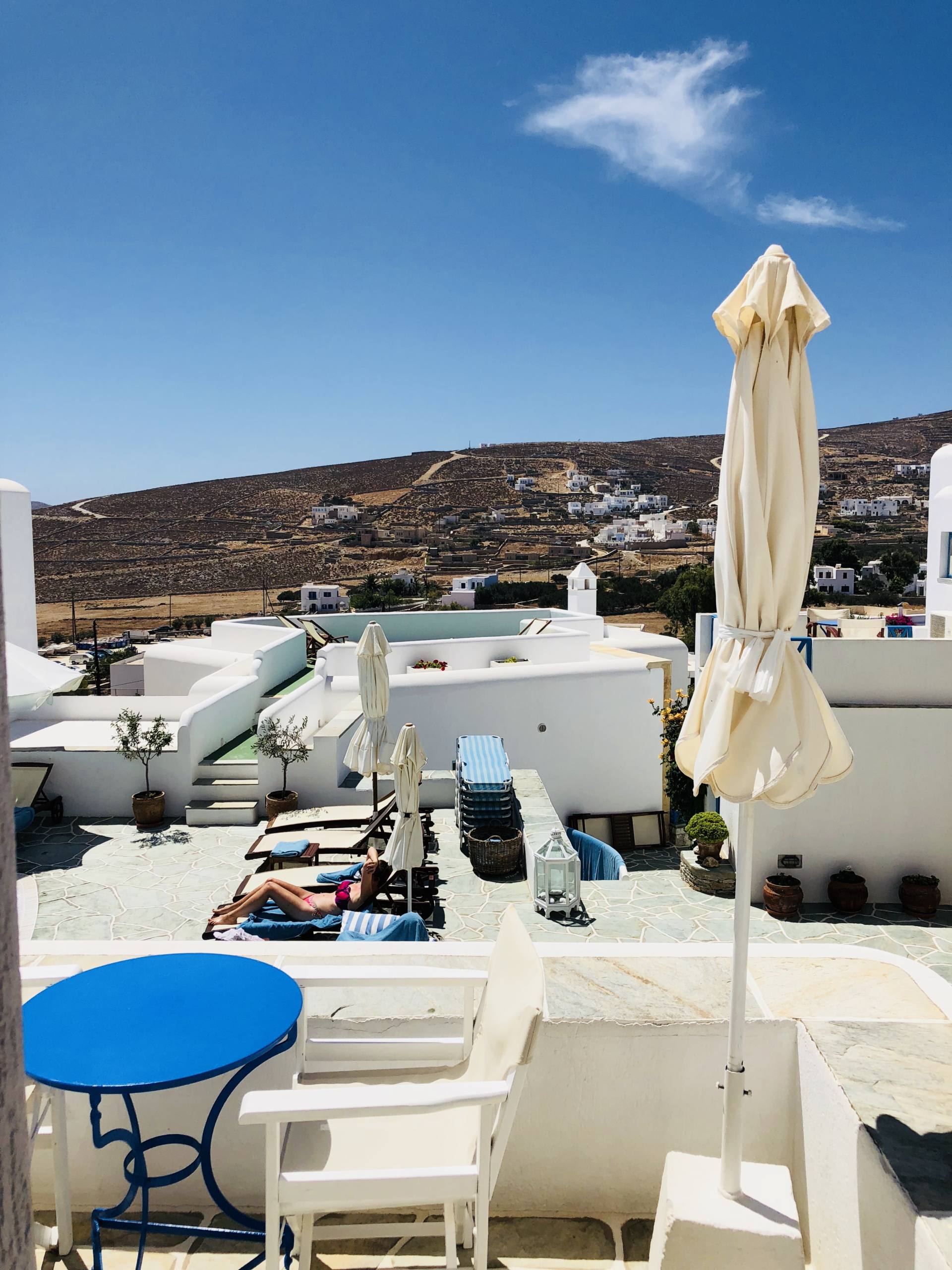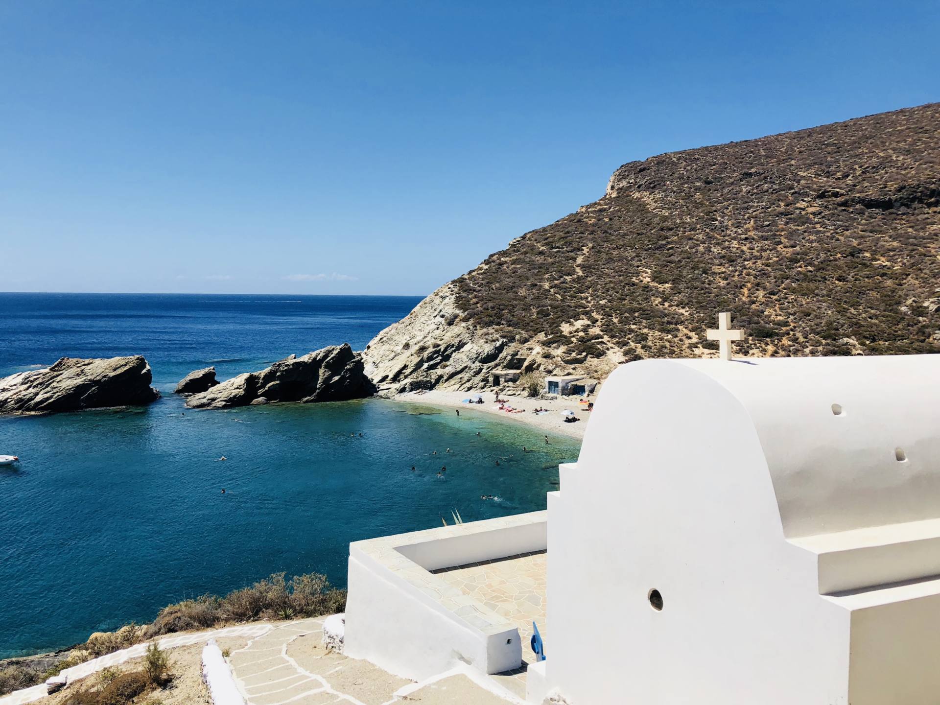 On a pas beaucoup vadrouillé car on avait opté pour Folegrandos pour faire un break, se poser, se balader tranquillement, profiter de la piscine … Je vous recommande vraiment d’arpenter les petites ruelles du centre de Chora, c’est vraiment mignon, il y a beaucoup moins de monde que sur les autres îles, c’est paisible et vraiment reposant ! Sur la place principale, il y a une belle vue sur la Mer !