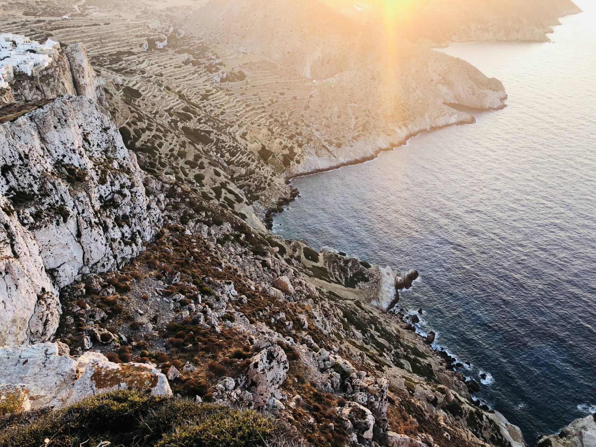 Cette petite île, je ne pense pas qu’on l’aurait faite si on ne me l’avait pas recommandée. On aurait sûrement opté pour Milos, Amorgos, Naxos ou encore Ios ! Mais une de mes amies m’a dit « Il faut que tu fasses Folegandros » ! Je n’ai pas cherché plus loin, j’ai regardé où c’était, j’ai tapé sur Booking, j’ai trouvé un hôtel chouette à prix correct, j’ai validé et c’était acté ! Je ne regrette pas du tout car dès notre arrivée, on a été sous le charme ! Une île plutôt petite, des paysages différents de ce qu’on a déjà vu, une mer magnifique à flanc de falaise du côté de la chora avec de chouettes spots, et surtout, ce côté slow life qu’on cherchait pour finir notre voyage ! C’est beaucoup plus calme, c’est une île moins prisée et on se pose davantage ! L’île idéale pour faire un vrai break, pour se poser et profiter tranquillement !