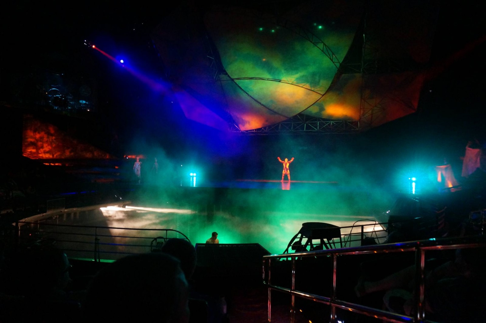 Mystère (Hôtel LE TREASURE ISLAND) : C’est clairement mon spectacle préféré ! Beaucoup de couleurs, beaucoup d’acrobaties, beaucoup de rire aussi, et un duo d’artistes exceptionnels en plein milieu du spectacle. Vraiment un spectacle très complet qui vaut le détour. L’idéal est d’être placé à mi-hauteur de la salle.