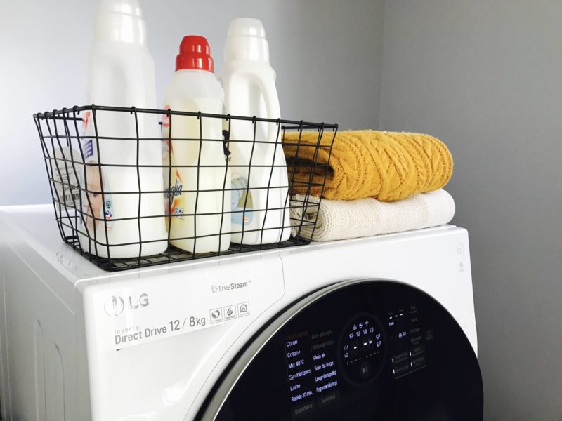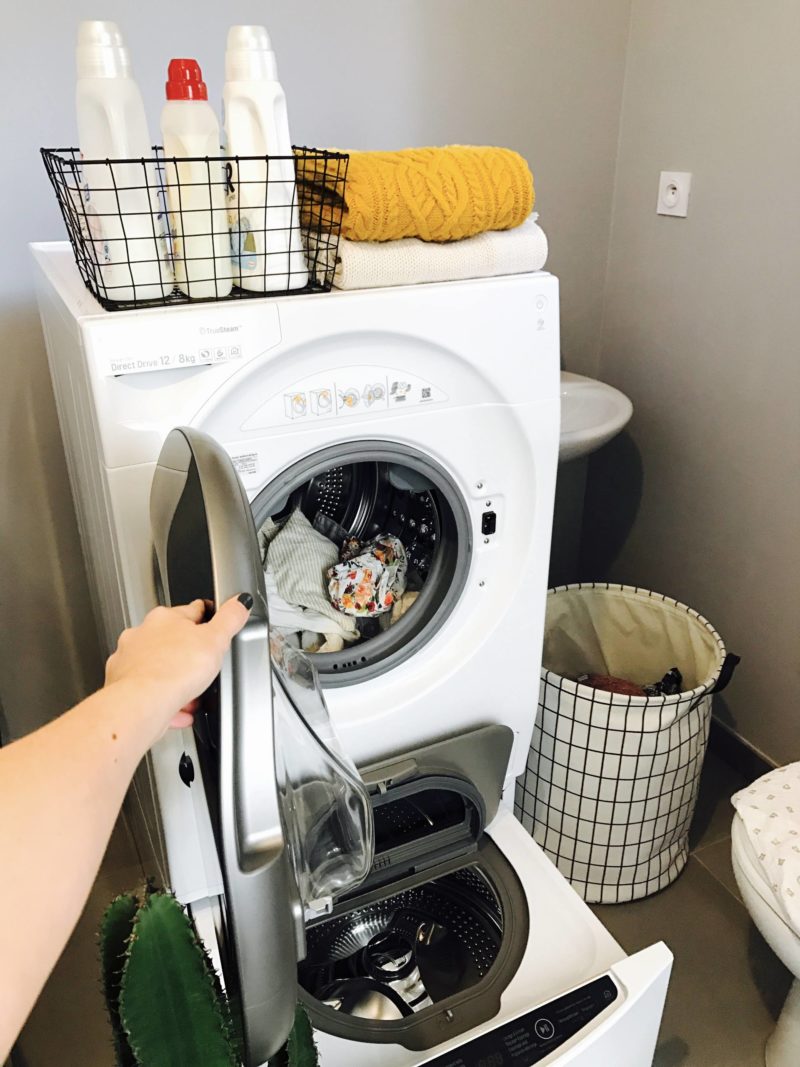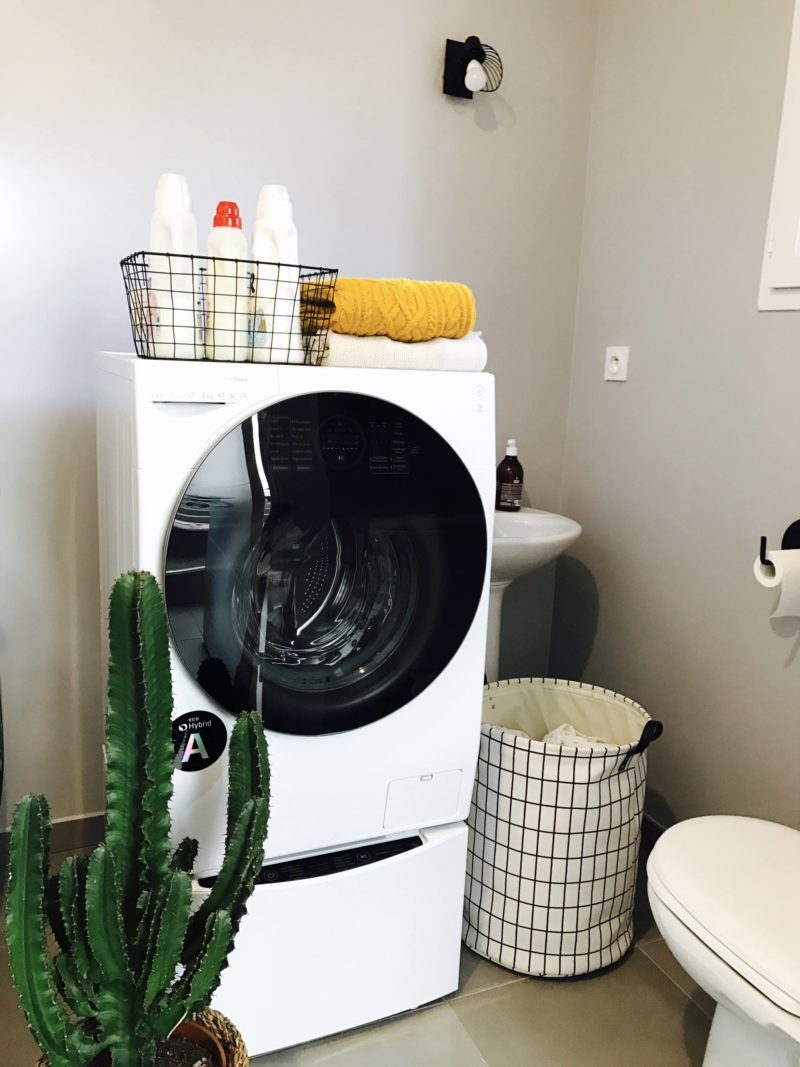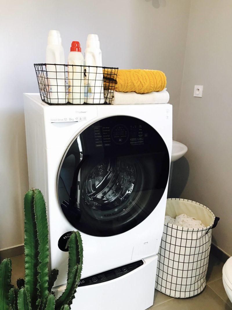 La machine a pas mal de programmes, ça m’arrange car j’ai beaucoup de pièces fragiles donc le programme “Soin du linge” par exemple m’est bien utile ! Il y a aussi un programme dédié pour l’univers bébé. D’ailleurs, la TWINWash™ est équipée d’une technologie que je ne connaissais pas mais que je trouve top, notamment en tant que Maman. Il s’agit de la technologie TrueSteam™ qui élimine les odeurs mais aussi les plis et surtout les allergènes domestiques. Tip top pour le linge des bébés ! Les vêtements ressortent bien plus souples qu’avant où les jeans et certaines autres matières pouvaient ressortir rêches. Elle a même le wifi pour l’enclencher en différé. Ce qui est top, vu qu’elle est dans la buanderie, juste à côté du salon, c’est qu’elle est hyper silencieuse. L’ancienne (de chez LG aussi), l’était déjà pas mal mais celle-ci, c’est fou ! Un bijou de technologie comme je n’imaginais même pas qu’il en existait ! D’ailleurs, elle est plutôt très belle cette machine !