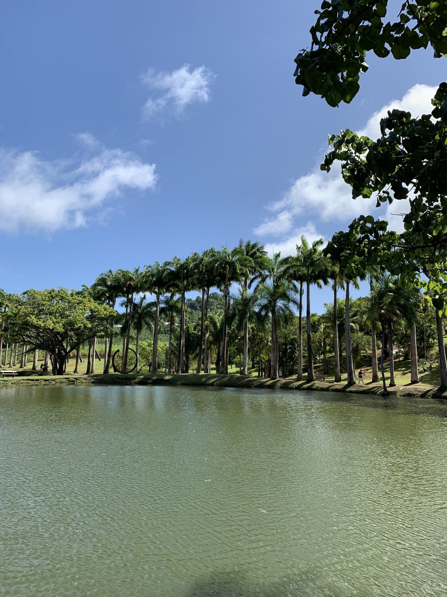 Plus au sud, on a fait la route des Crêtes. Elle débute au Marin et va jusqu’au François. On pensait qu’il y aurait plus d’intérêt mais finalement, le point d’observation au tout début suffit largement ! Sur le reste de la route, on s’attendait à beaucoup de panoramas, puis il n’y en a pas eu tant que ça. Par contre, en arrivant sur Le François, ça vaut le coup de faire l’Habitation Clément, une superbe rhumerie avec un magnifique parc arboré, très bien entretenu et riche de belles oeuvres d’art contemporain. On retrouve l’histoire de la canne à sucre et du rhum (je ne savais pas qu’initialement, le rhum vient plutôt d’Asie), des explications sur la fabrication, le stockage, et la reconstitution d’une case créole. Il y a aussi la Fondation Clément avec des expositions. En fin de visite, il est possible de déguster rhums et punchs. On est reparti avec un Punch Cerise pays, plutôt original par rapport à un planteur/punch classique ! Si vous avez un bébé, c’est faisable en poussette, c’est ce qu’on a fait ! Essayez d’y aller le matin car c’est très ensoleillé donc il fait bien chaud ! Au François, je vous recommanderais de faire un tour en bateaux pour voir les fonds blancs, ce qu’on a finalement pas fait car on a mal estimé le temps ! On ne peut pas faire la route + l’Habitation Clément + les fonds blancs en bateau sur une même journée. Les fonds blancs prennent une journée complète.