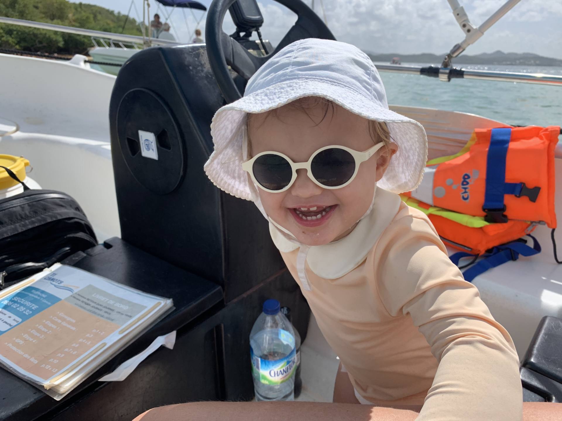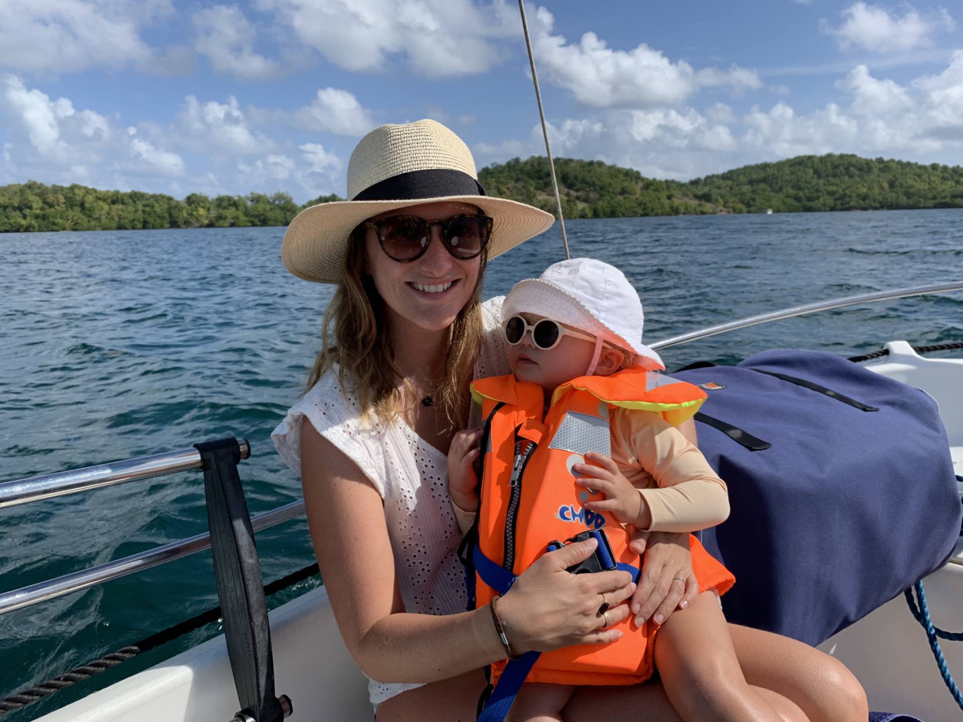 Vous l’avez vu sur instagram, on a fait les îlets du Robert en bateau. J’avais trop envie de faire du bateau pendant ces vacances en Martinique. Stéphane n’a pas le permis, moi non plus, et on ne voulait pas faire de balades en groupe en catamaran ou autre bateau à moteur car avec Louise, on préfère être indépendant : pouvoir s’arrêter manger quand on a envie, pouvoir s’arrêter/repartir et voir ce qu’on veut. J’ai donc trouvé dans le guide un loueur de petits bâteaux sans permis, Ti Canots. Les bateaux sont pour 2 à 6 personnes. Honnêtement, c’est idéal pour 2 adultes + kids ou pour 4 adultes. 6 personnes, ça fait beaucoup ! C’est facile à piloter suite à un petit brief, et le GPS est pré-réglé, il s’agit de suivre la direction indiquée. Un téléphone est aussi mis à dispo en cas de besoin. Il y a 3 arrêts à faire : l’un sur une île où on peut voir des iguanes. Cette espèce est considérée comme en voie d’extinction depuis quelques mois donc il s’agit de les observer sans agir sur leur mode de vie : interdiction de les nourrir, de les toucher. On a pu tout de même en voir 2, et un bébé aussi, trop mignon ! Il y a aussi des ruines à voir. Prévoyez des chaussures d’eau pour aller sur l’îlet. On en avait pas et ça nous a manqué ! Le deuxième arrêt était près de l’îlet Chancel, une zone où l’eau est bleu turquoise, magnifique, un sacré souvenir ! C’est là qu’on a fait notre pic-nic sur le bateau. Pensez-bien à prévoir un tote-bag ou quelque chose pour réunir vos déchets car il y a de temps en temps du vent, donc ça évite que tout ne parte en mer 🙂 … Dernier arrêt à l’îlet Madame où on voit de beaux fonds blancs. On est resté pour se baigner et pour le plaisir d’avoir pied à 30m du bord ! C’était la première fois que je voyais ça !