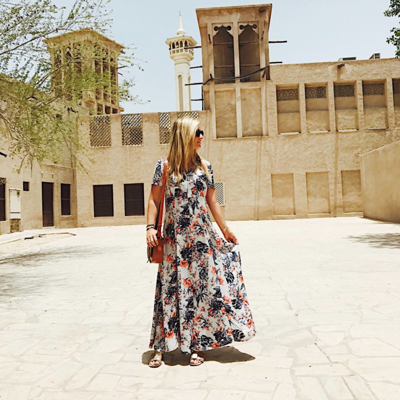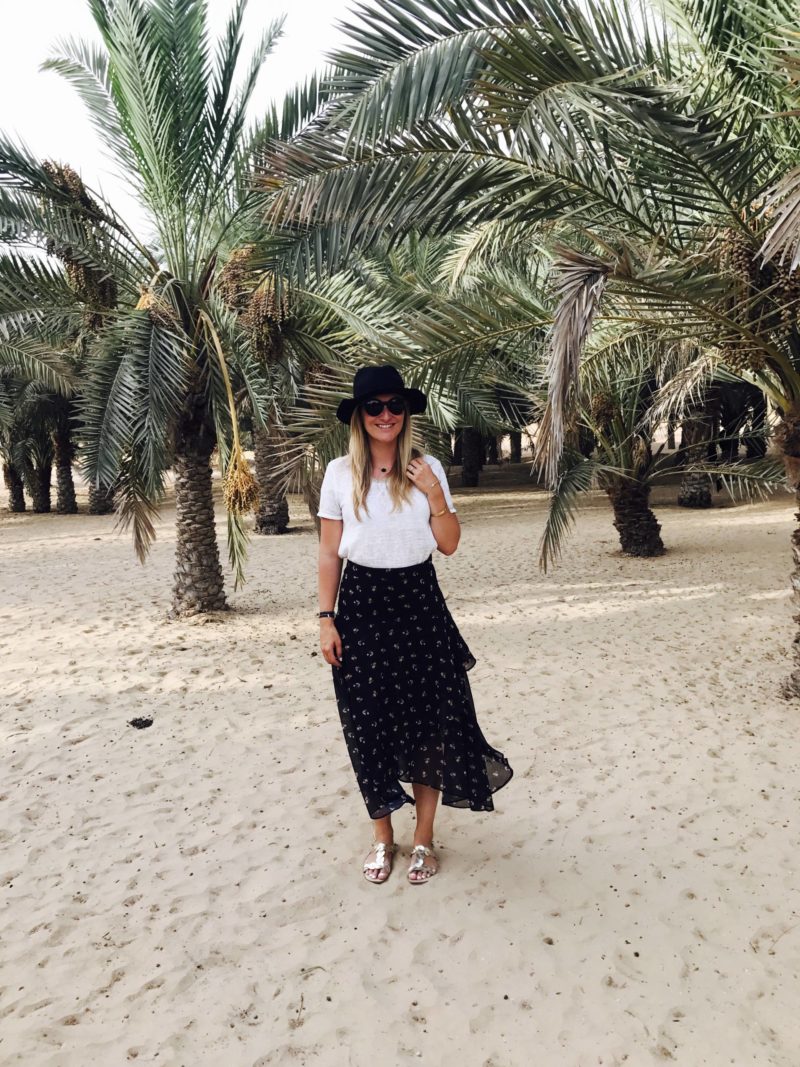 Pendant ma journée à Dubaï, j’ai porté deux tenues différentes. Je ne savais pas trop comment m’habiller pour aller à Dubaï car il était prévu de faire le marché de la vieille-ville mais également une soirée dans le désert et un déjeuner avec le ministère du Tourisme de Dubaï. Je voulais une tenue convenable qui puisse correspondre aux habitudes du pays (même si il n’y a aucune contrainte) tout en ayant pas chaud car il faisait 45 degrés, même si oui, tout est climatisé …