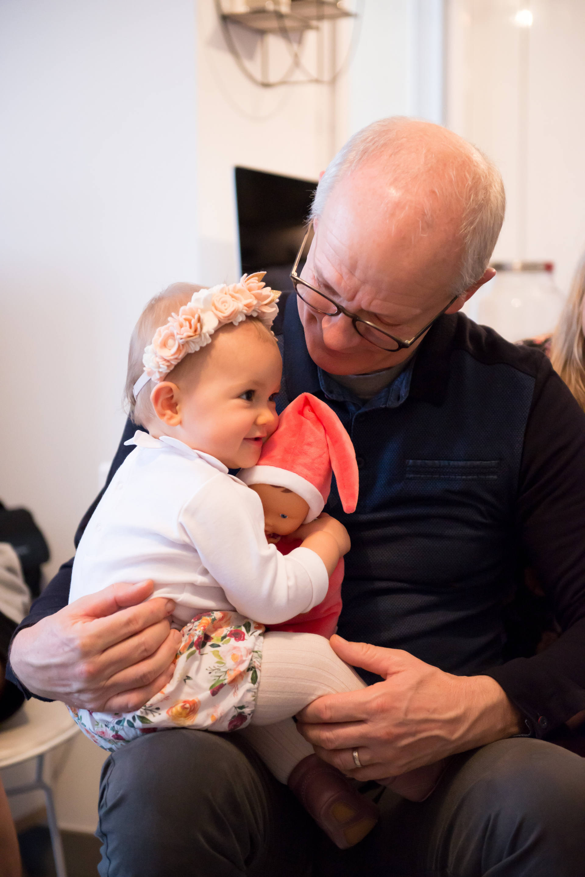 Après le gâteau, les cadeaux. Comme toujours, les grands parents et nos amis ont été extrêmement généreux. On a de la chance car elle n’a eu que de jolis cadeaux. Certains se sont inspirés de notre liste, d’autres non, mais finalement, tout le monde a visé juste ! Vu que le Père Noël venait de passer, c’était plutôt des vêtements, de la décoration pour sa chambre et des indispensables. Je ne vais pas vous faire l’inventaire ici, c’est un peu délicat je trouve, mais vu qu’on utilisera tout, vous les verrez passer sur instagram (@louiseetmaud). On a eu de vrais coups de coeur ! Louise a pris du plaisir à les déballer. Souvent, on me dit “Mais elle ne va pas les déballer elle-même ?”. Et bien si ! Je l’aide à enlever les scotchs ou ficelles mais elle adore déchirer, et elle me fait trop rire quand ce sont des pochettes. Elle glisse un regard à l’intérieur, elle plonge son bras et elle retire ce qui s’y trouve d’un coup sec ! Une vraie coquine ! Avec Stéphane, on voulait lui offrir un cadeau durable alors on a opté pour un tricycle que j’adore, celui de chez Iimo Store. Il est évolutif et surtout trop mignon. Je l’avais repéré sur Instagram pendant ma grossesse, c’est vous dire ! C’est simple, elle a adoré. Elle avait un grand smile, elle a bien compris où était le “pouet-pouet” et elle avait son bébé dans le panier à l’avant. J’adore la voir s’émerveiller et découvrir de nouvelles choses. On l’a testé depuis et elle a vraiment adoré !