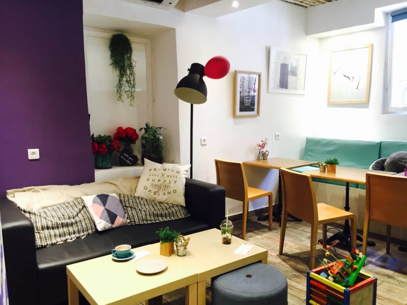 Je voulais y aller depuis un moment mais comme je vous disais, je ne suis pas souvent du côté d’Antibes. Vu que c’est ma dernière semaine de vacances, j’en ai profité pour m’organiser un petit lunch là-bas avec ma copine Caro ! Il faisait très chaud, et le bon point, c’est que la terrasse est à l’ombre jusqu’à 15h ! On était déjà bien avant même d’entrer. A l’intérieur, c’est vraiment un endroit très cosy et à voir les jouets à l’intérieur, ça a l’air plutôt kids friendly.