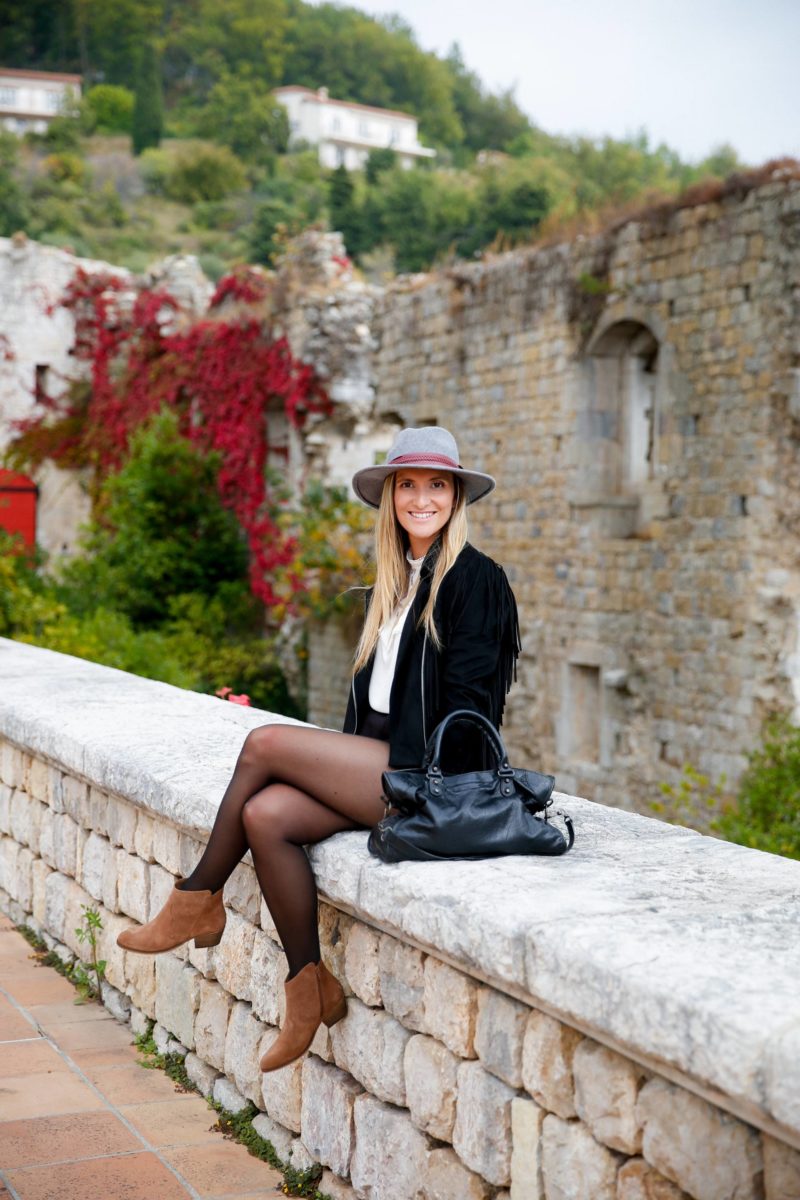 La vraie raison, c’est que je portais ENFIN ma nouvelle blouse de chez Sézane. Je l’ai achetée à Paris au mois de septembre et ça a été un vrai coup de coeur. Elle a tout ce que j’aime, une matière qui ne se froisse pas, de la dentelle, un joli col. Elle était faite pour moi ! Je la portais avec un jean Sézane aussi, ma veste à franges Zara shoppée en soldes cet été à 20€, mon chapeau gris et bordeaux de l’an dernier que j’aime toujours autant et des nouvelles bottines. Je vous les ai d’ailleurs montrées en story car je les trouve vraiment canon. C’était la première fois que je les portais. J’avais prévu des pansements au cas où, puis finalement, j’ai été comme dans des chaussons ! Je les ai portées du matin jusqu’au soir et j’étais très bien. En plus, elles sont à -30% soit 48€ en ce moment, méga bon plan si vous aussi vous avez besoin de nouvelles chaussures.