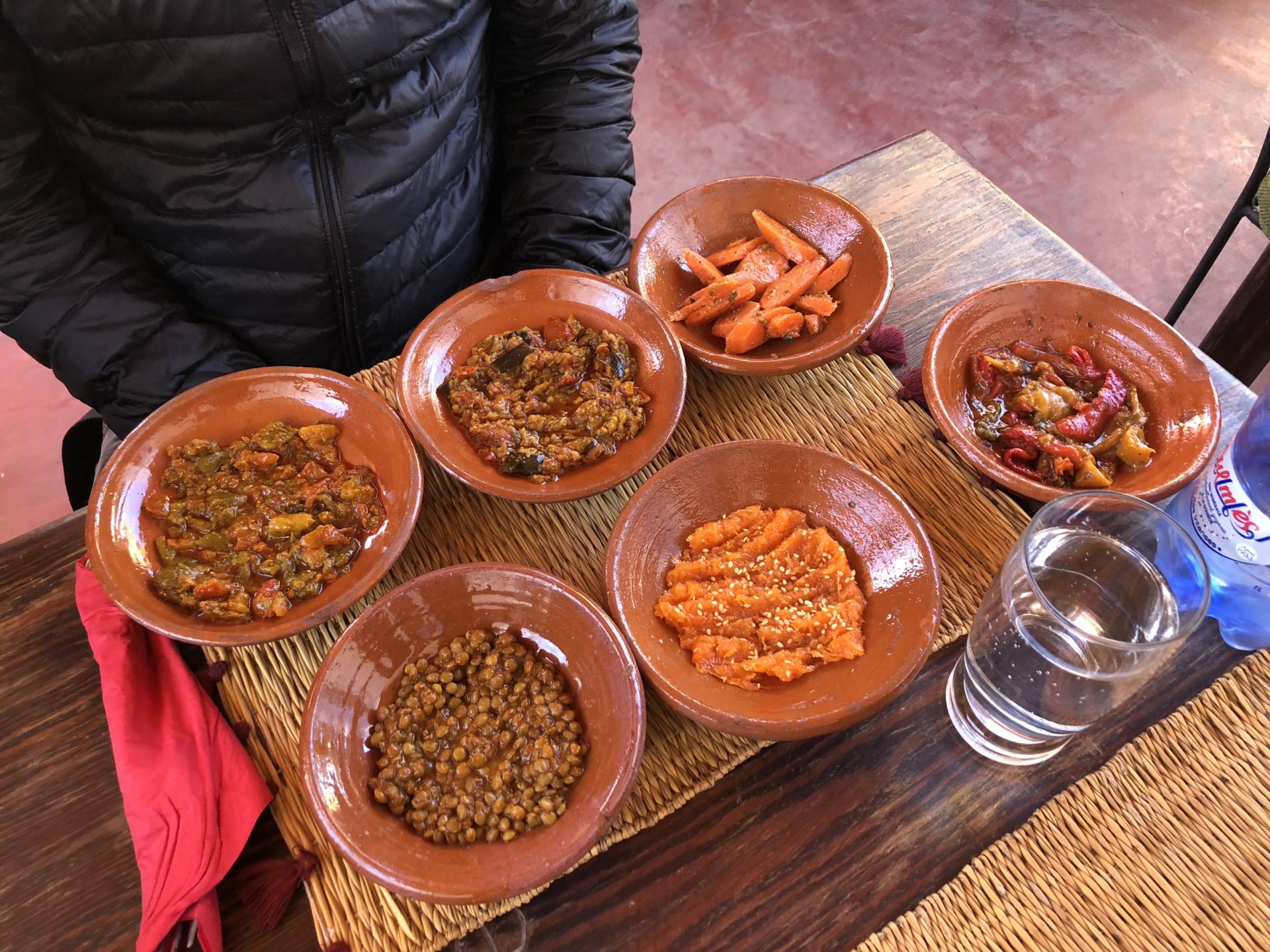 La table de la médina : C’est le restaurant du premier soir, on est passé devant et un raccoleur nous a interpelé ! Il était déjà tard, on avait faim, on était un peu crevé aussi et Louise dormait, donc on s’est dit qu’on allait tenter, qu’au pire, on ferait mieux par la suite. Finalement, on va tout en haut sur une grande terrasse, c’est très escarpé, Louise dormait donc on a pas pu plier la poussette, ça a été un calvaire pour monter et redescendre ! On a attendu hyper longtemps pour être servi. Mais c’était super bon ! J’ai pris un tajine végétarien pour 65dr, donc 6€ environ. Un délice ! Les autres plats sont max aux alentours de 9€ et très bons aussi. La salade d’oranges est par contre pas folichonne, le thé non plus, trop fort et amer. Mais si vous y allez, les plats sont tops !