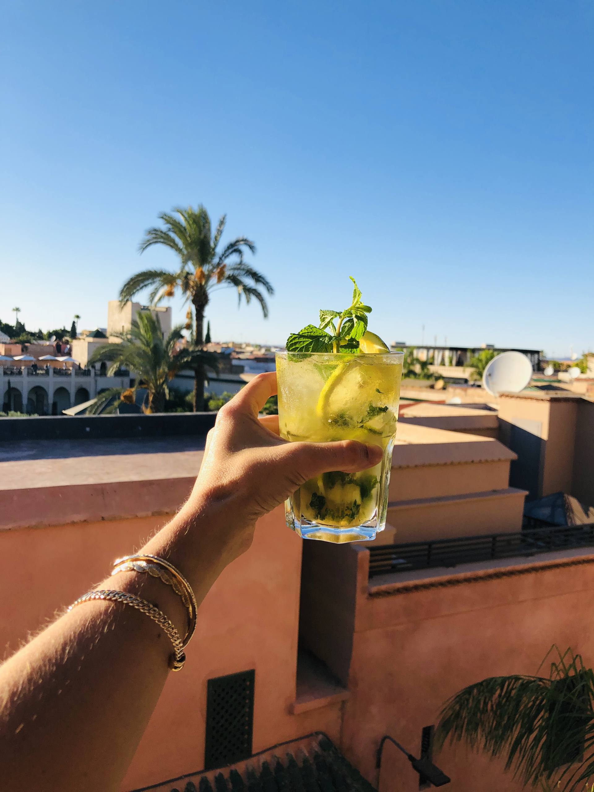 Si vous en avez marre de boire du thé et des jus d’orange, on a testé un bar qui sert de l’alcool : Le Café Arabe ! Et en plus, c’était très bon, de délicieux cocktails ! La vue est sympathique aussi, notamment au coucher du soleil !