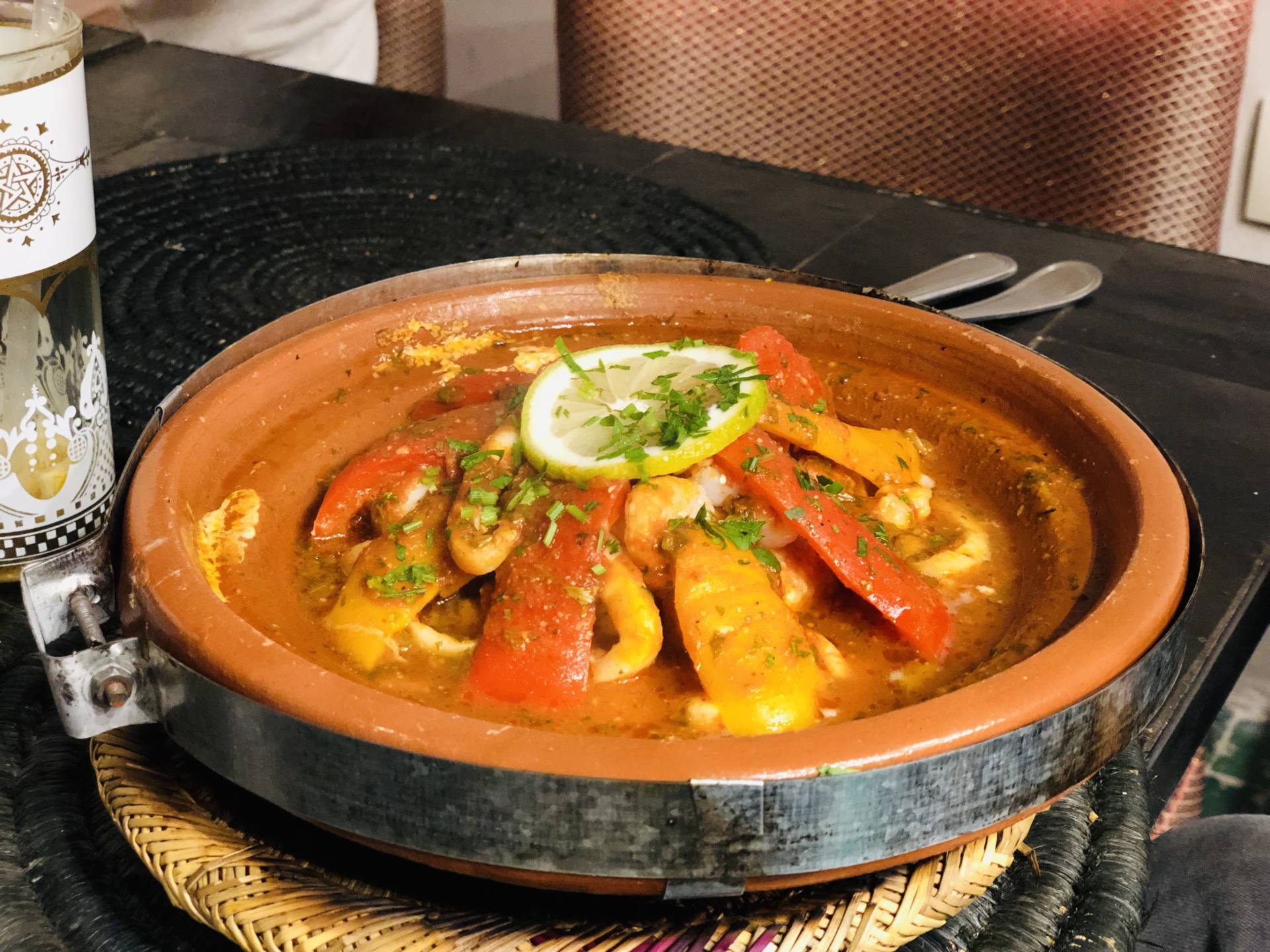 Le Souk Café : On y est allé le midi et je vous le conseille ! Une belle terrasse en hauteur pour être plus au calme et une super carte ! Le thé glacé était très bon et les plats, à l’unanimité, délicieux ! J’ai pour ma part pris un tajine d’agneau aux pruneaux. Servi avec de la semoule, c’était juste parfait et vraiment très goûteux ! Le mix de salades marocaines était très bon aussi, mon beau-père l’a pris mais on lui en a piqué ! Steph a pris de la pastilla qui était dingue, mais attention, c’était servi en entrée et vraiment copieux, ça peut faire un plat sans problèmes ! Le menu entrée, plat, dessert et thé est à 18€. Les plats à 7-9€ environ. 2€ le dessert. La salade d’oranges était très bonne !