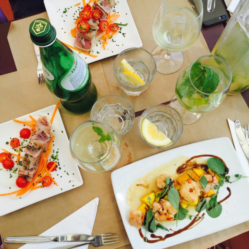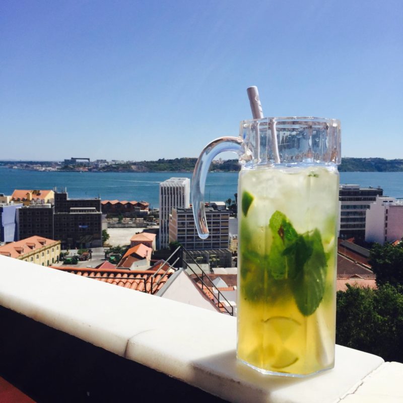 – Pour un lunch ou un apéro très sympa avec une jolie vue sur le pont et le coucher du soleil : le Noobaï ! Mon adresse préférée de Lisbonne. Un très joli rooftop cosy, sympa avec des prix corrects. J’ai opté pour les crevettes à la mangue, c’était super bon, tout comme les sangria pétillantes à la menthe et au citron d’ailleurs !