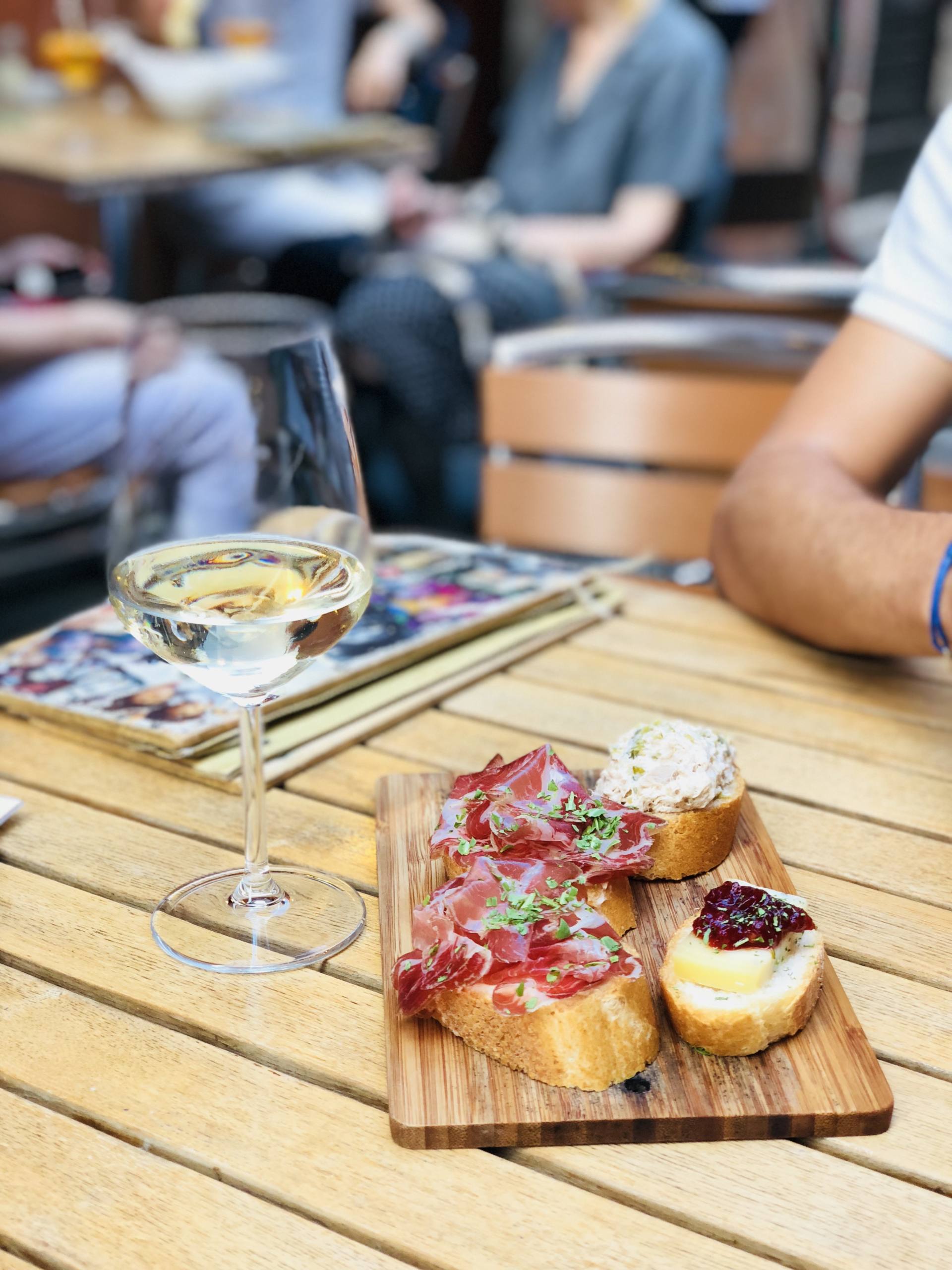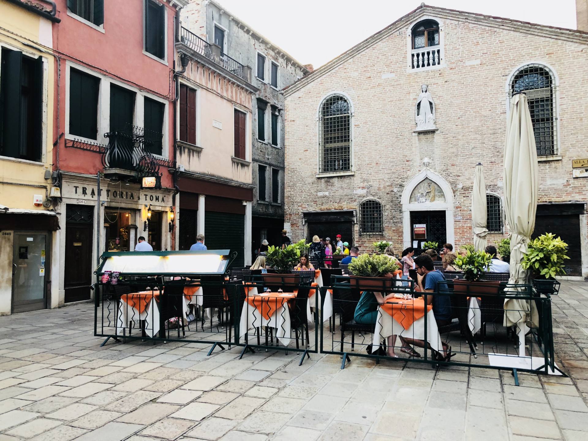 •• Pour un apéro et des ciccheti : c’est mon père qui m’a recommandé d’aller à l’Ostaria dei Zemei, une petite adresse non loin du Pont Rialto, quelques tables dehors et un comptoir de ciccheti, des tartines apéritives ! On a goûté celles au jambon cru, au thon et la veggie, un régal. Avec une bière, un prosecco, dans une rue calme et un serveur très sympa ! Compter 15€ pour 2 verres et 4 ciccheti.