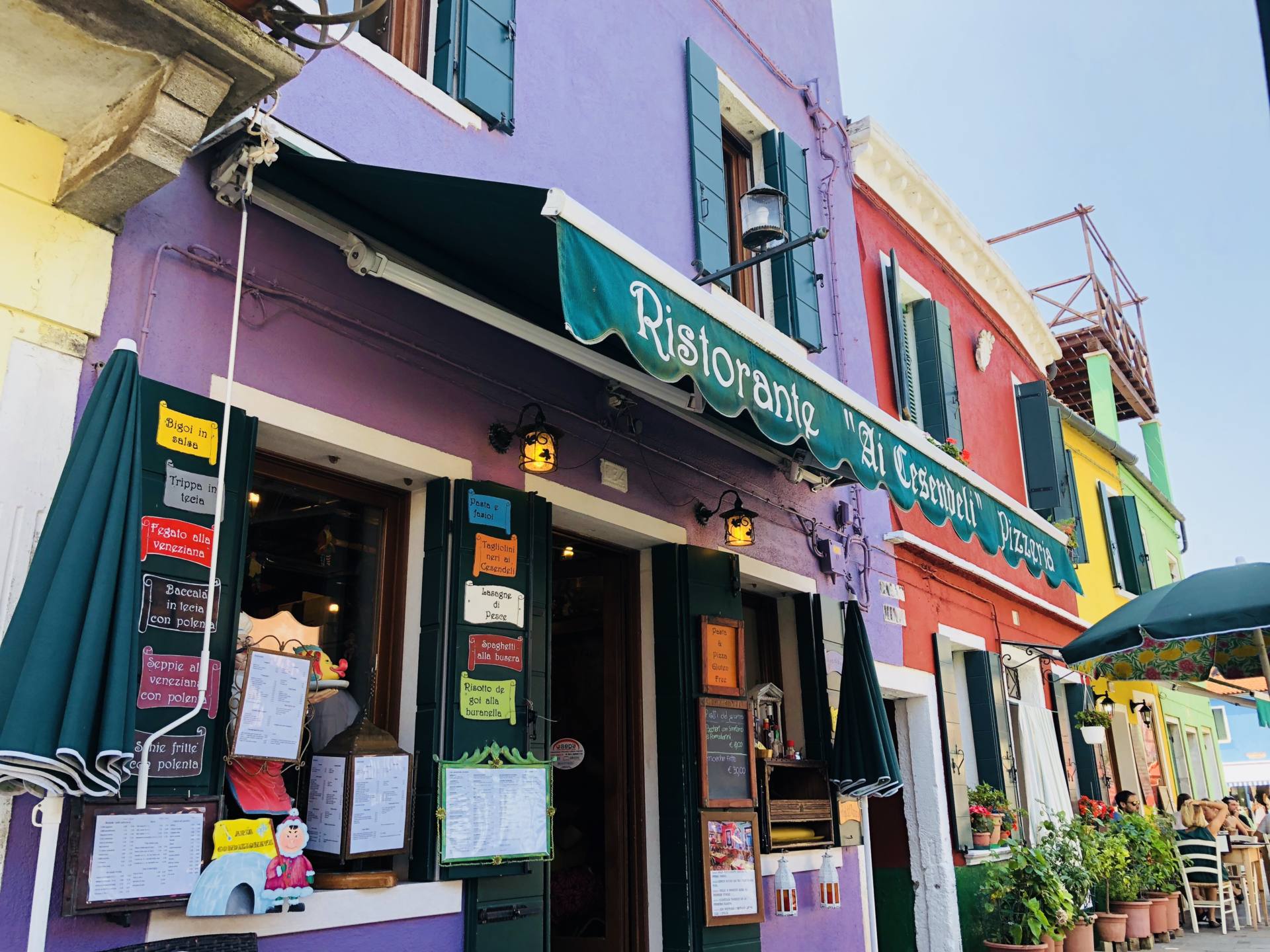 •• Pour manger pas trop cher à Burano : l’adresse la plus courtisée de l’île est toujours complète, c’est Al Gatto Negro ! C’est un peu cher pour un lunch simple. On est allé dans un autre restaurant de l’île choisi au hasard pour déjeuner sur la terrasse : Ai Cesendeli. Deux plats de spaghetti bolognaise, une salade caprese et des légumes grillés, avec une bière et du prosecco, c’était très bon, pour 55€ le tout ! Au bord d’un petit canal avec un chanteur qui est venu gratter sa guitare. Dis comme ça, ça fait touristique mais l’île l’est donc c’est normal ! On a bien mangé quand même !
