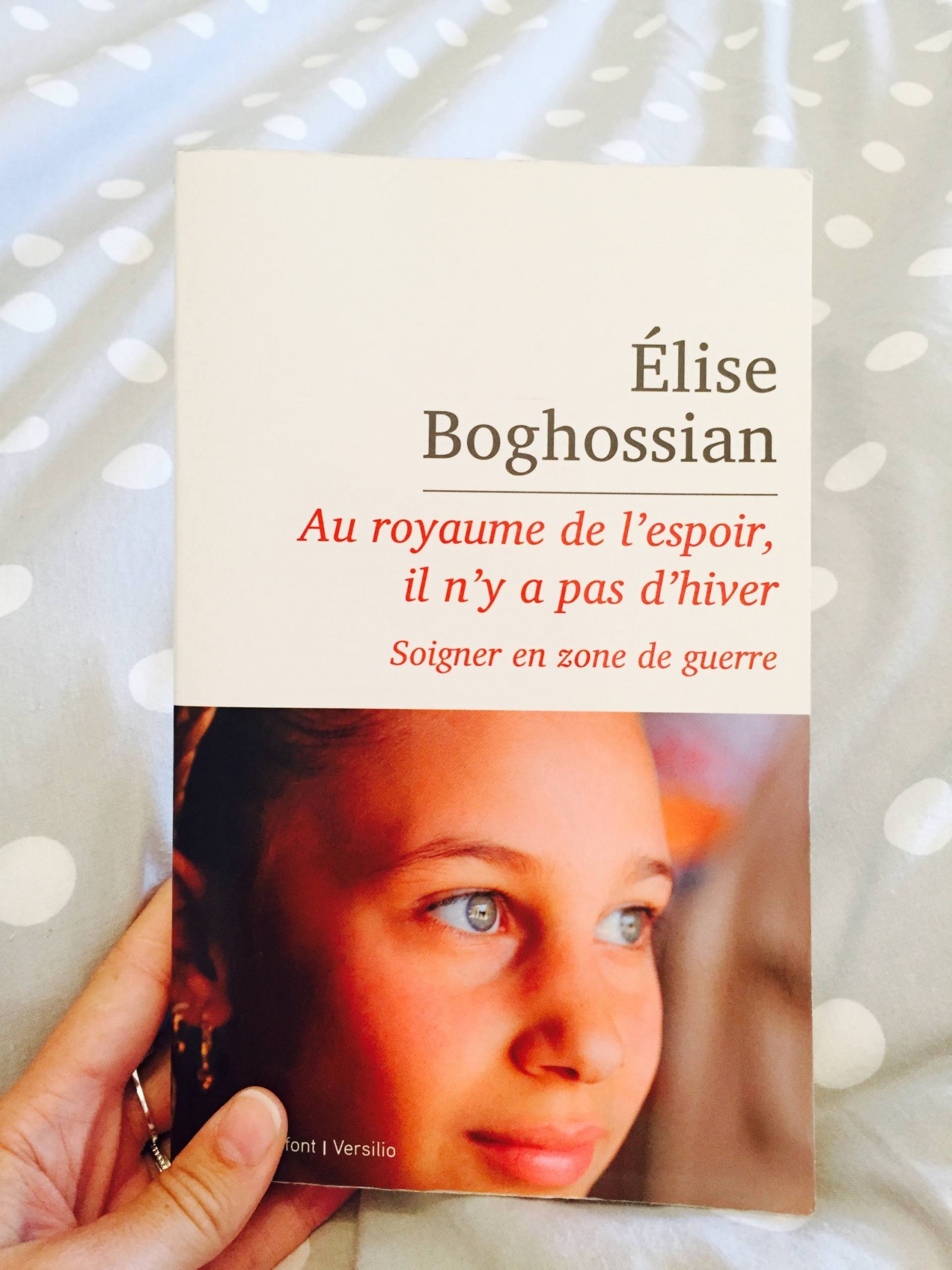 – Au royaume de l’espoir, il n’y a plus d’hiver d’Elise Boghossian (terminé). Le retour d’expérience d’une acuponctrice qui se bat pour prouver l’efficacité de ses traitements afin d’aller soigner les blessés de guerre dans les camps de réfugiés, aux frontières de la Syrie et de l’Irak. Le parcours admirable d’une parisienne qui sort régulièrement de son confort français pour aller s’occuper des réfugiés, et notamment des femmes. Le genre de femmes que tu aimerais rencontrer pour aller boire un verre et juste l’écouter !