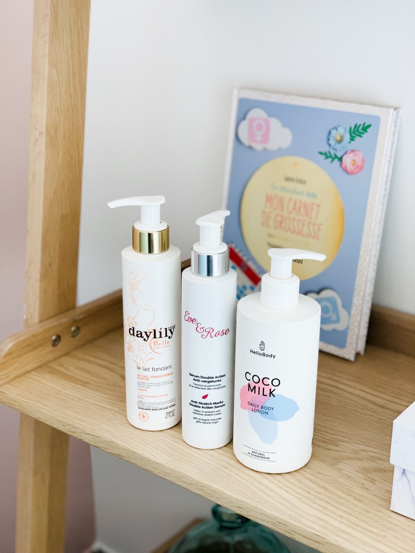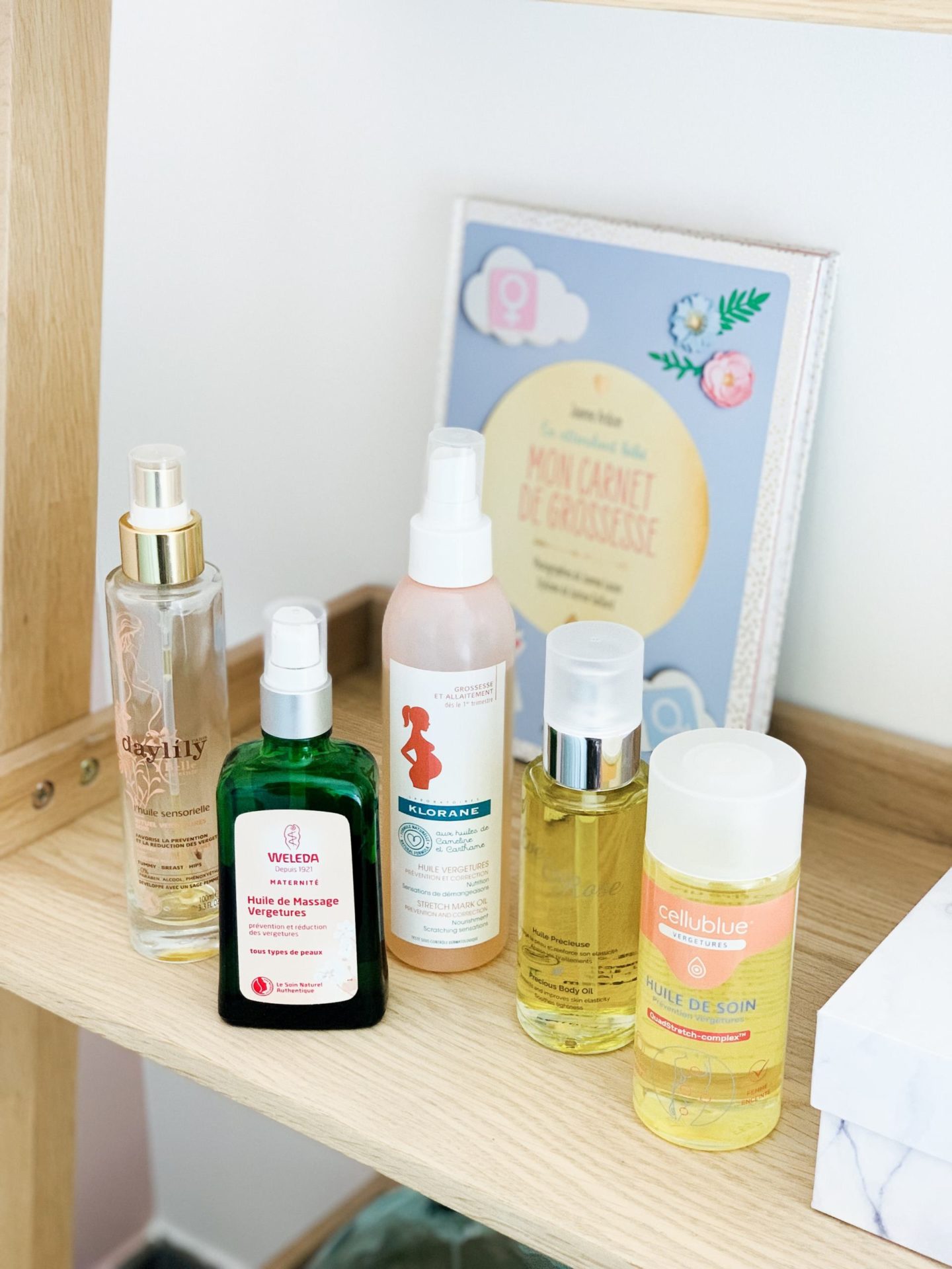Pour ma part, je continue l’huile anti-vergetures même après la grossesse parce que les vergetures peuvent apparaître en post-partum, mais également pour le bien que ça fait. La peau est distendue, le corps a bien travaillé, alors le masser, c’est une façon de l’aider à se remettre.