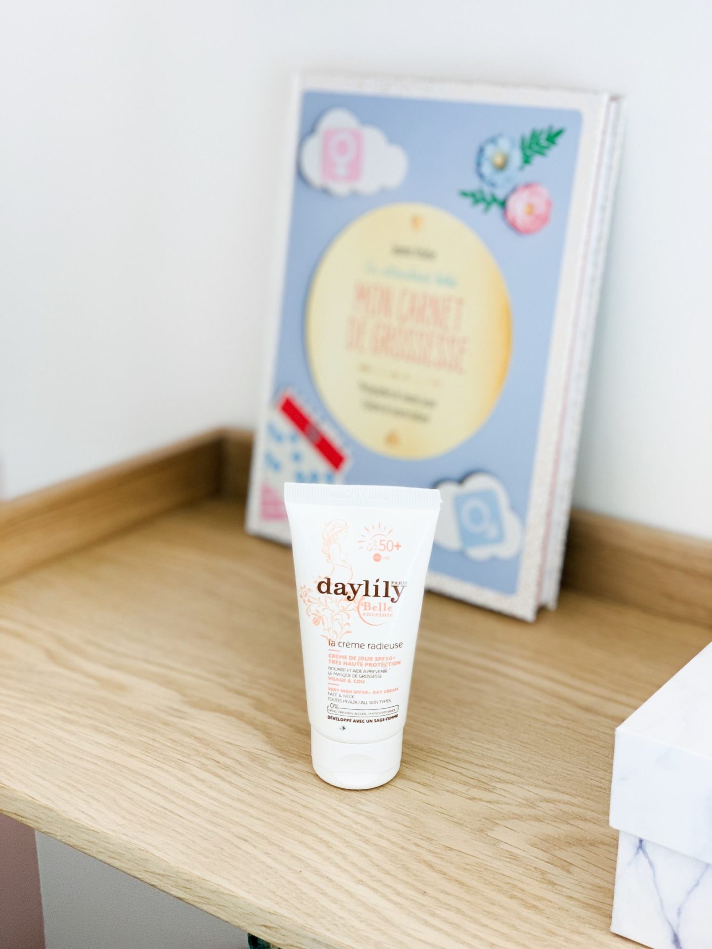 - Petite nouveauté de cette grossesse, une bonne solaire visage spécifique grossesse. C’est Daylily Paris qui me l’a envoyée et je l’ai utilisée tout l’été. Je vis à Nice, on a un fort taux d’ensoleillement, donc j’en ai mis quotidiennement, le matin. Texture un peu épaisse, mais je m’en suis accommodée, pour éviter le fameux masque de grossesse ! Evidemment, je me mets majoritairement à l’ombre, mais ça, ce n’est pas que pendant la grossesse, je préserve ma peau toute l’année !