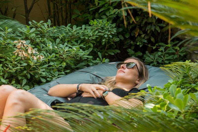 On attaque la journée en se donnant de l’énergie, et elle recommande deux petites choses : se faire un jus d’orange pressé avec du gingembre ou un jus vert le matin et se préparer une eau chaude dans laquelle on infuse du citron, de la menthe, du concombre, du gingembre. On laisse refroidir et elle dure la journée. Certaines me diront qu’elles n’ont pas le temps ou qu’elles ne veulent pas se lever encore plus tôt ? Même si je suis souvent dans ce discours-là, qu’on se le dise, c’est une question de volonté car j’ai des amies qui le font quotidiennement et ça leur semble évident ! Après une dose d’énergie assimilée, place à la méditation. C’était totalement inconnu pour moi. Je dois même dire que mon discours était plutôt “Non, mais ça sert à quoi ? Je fais la sieste et c’est pareil non ?”. Magali nous a expliqué qu’à ses débuts, elle aussi était sceptique quant à sa capacité à se laisser aller en méditant. On lui avait expliqué que la séance durait 30 minutes, yeux fermés, et elle s’imaginait déjà en train d’ouvrir les yeux pour regarder les autres. Je me suis dit la même chose. Elle a commencé par définir mon son primordial à l’aide de ma date et de mon lieu de naissance. C’est un son spécifique à chacun avec lequel méditer. Ensuite, on s’est installé à l’extérieur, pris une position confortable, semi-allongée pour moi, et on a commencé à se répéter chacune pour soi son son primordial. Première fois, j’ai ouvert les yeux, deuxième fois aussi. Troisième fois, je me suis ressaisie en me disant “Maud, joue le jeu”. Les fois suivantes, j’ai commencé à partir dans mes pensées, puis je me suis recentrée sur mon son. Puis je me suis réveillée 20 minutes après. Ma copine était debout, Magali était avec elle, la troisième personne était assise. Je venais de m’endormir. Mais pas comme une sieste. Je me suis réveillée comme si j’étais stone, partie dans un sommeil hyper profond dont j’avais du mal à sortir. À partir de là, je me suis dit “ok, il se passe quelque chose”.