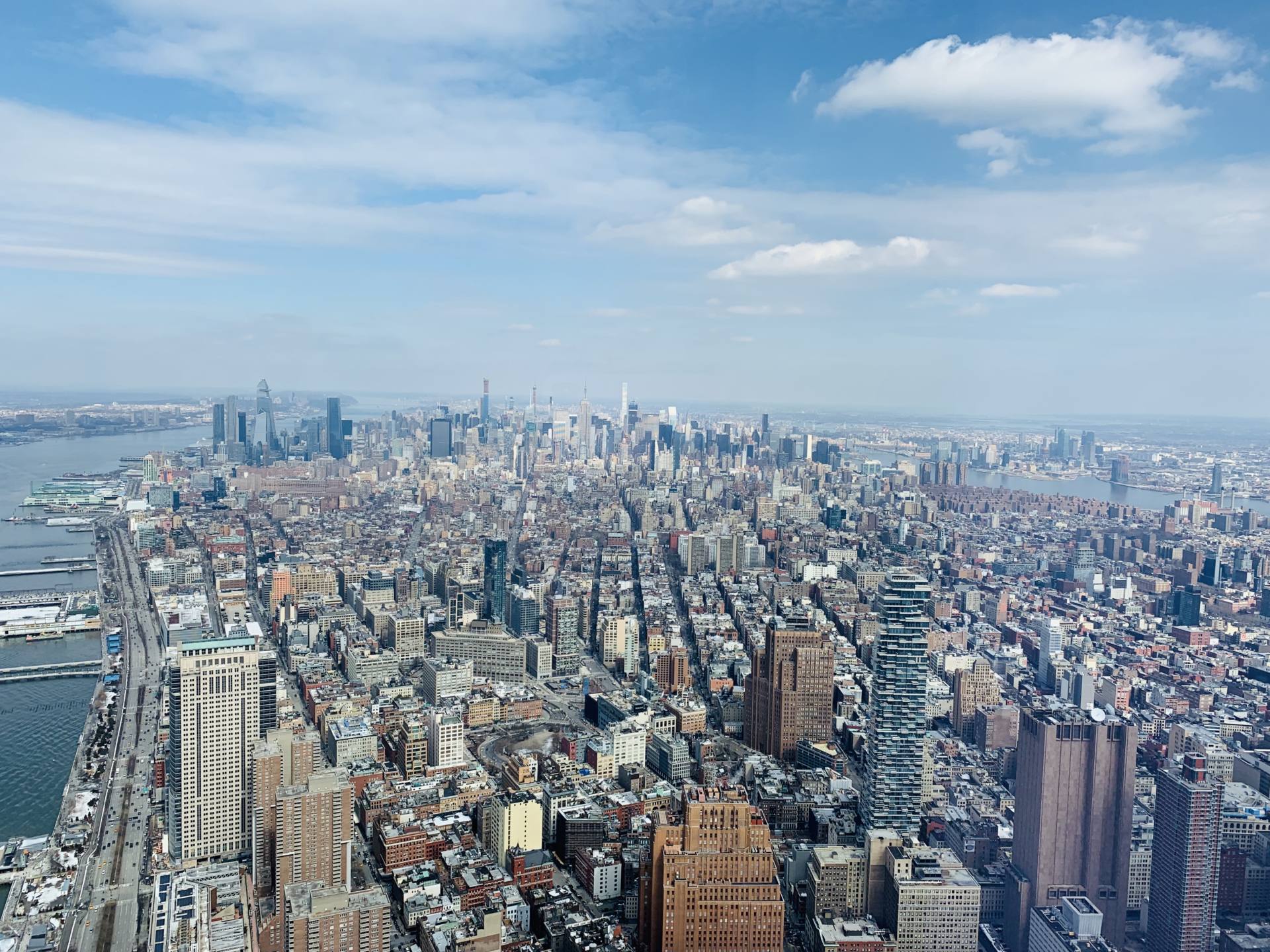 - One World Observatory : C’est la première fois que je montais tout en haut de la nouvelle tour du One World Trade Center. On ne l’avait pas fait avec Stéphane en 2017 mais là, c’était un passage obligé. C’est toujours très émouvant d’être dans ce secteur, mais alors monter cette tour l’est encore plus. On s’identifie à ces personnes qui venaient simplement travailler dans les tours jumelles en ce 11 septembre 2001. Il y a une introduction extrêmement bien fait et je ne veux pas vous en dire plus au cas où vous comptez y aller. Mais vraiment, c’est spectaculaire. La vue en haut est impressionnante, c’est fabuleux, on domine la ville. Par contre, c’est en intérieur donc cela ne fait pas le même effet que le Top of the Rock, quand on est en extérieur.