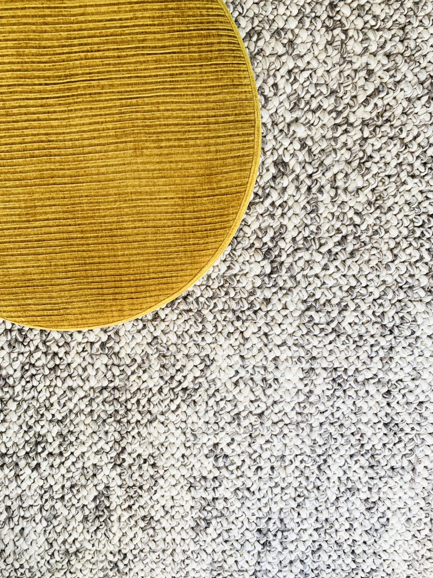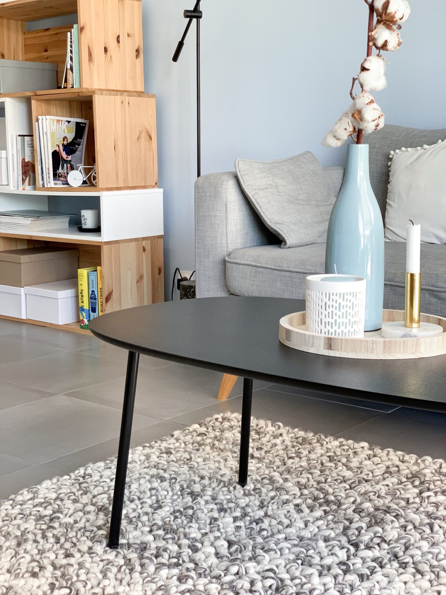 Côté mobilier, j’ai aussi eu envie de changements. J’ai adoré notre tapis, mais j’avais envie de quelque chose de moins blanc, de plus doux, qui se fonde davantage avec le carrelage. Celui-ci de chez Bolia est aussi plus qualitatif, ce ne sont pas des poils ras mais des boules les unes à côté des autres. J’adore mais il faut être prudent, cela est plus complexe à entretenir. Du coup, quand je vais des apéritifs, j’évite un max tout ce qui fait des miettes. Par contre, il craint beaucoup moins en termes de couleur ! On revit pour cela ! Avec l’autre, j’avais toujours peur avec le vin, la peinture, les chaussures etc … un tapis blanc, c’est bien, mais sans enfant et sans chaussures !