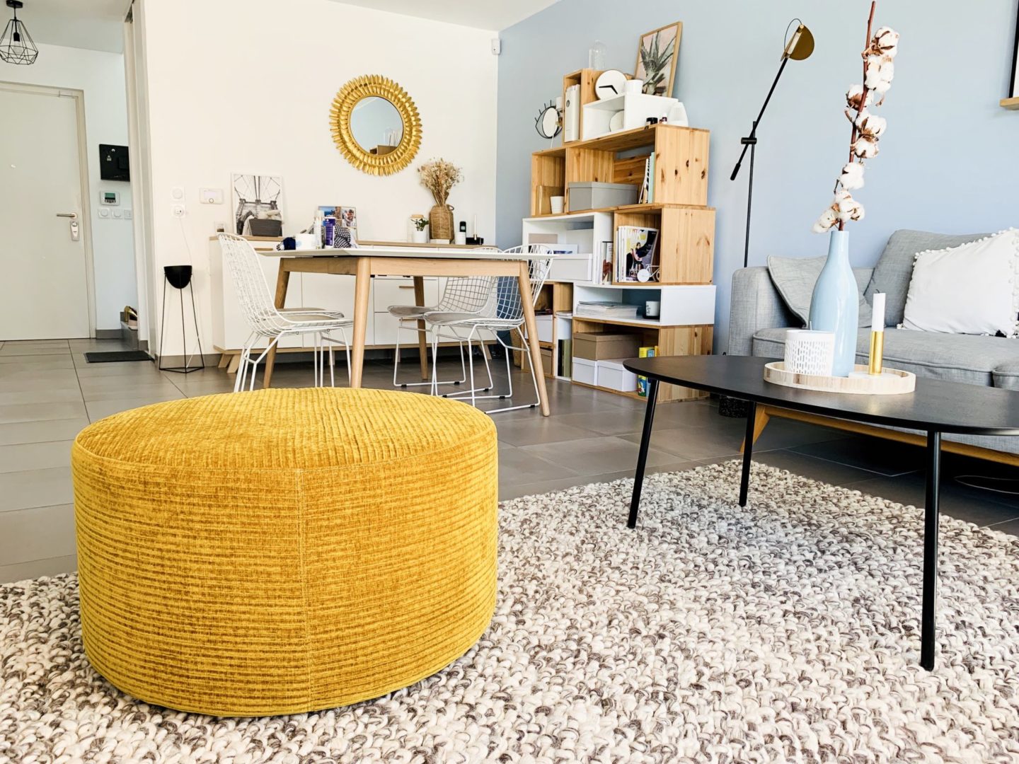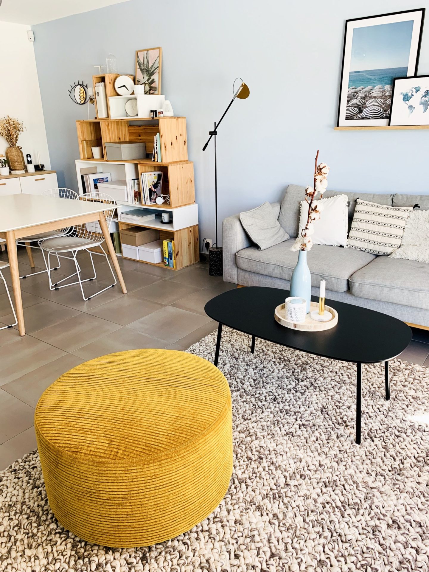 Votre salon vous représente tellement le côté simple, le côté peps la joie de vivre que vous avez et surtout accueillant c’est important ! En tous cas le pouf j’adore la couleur