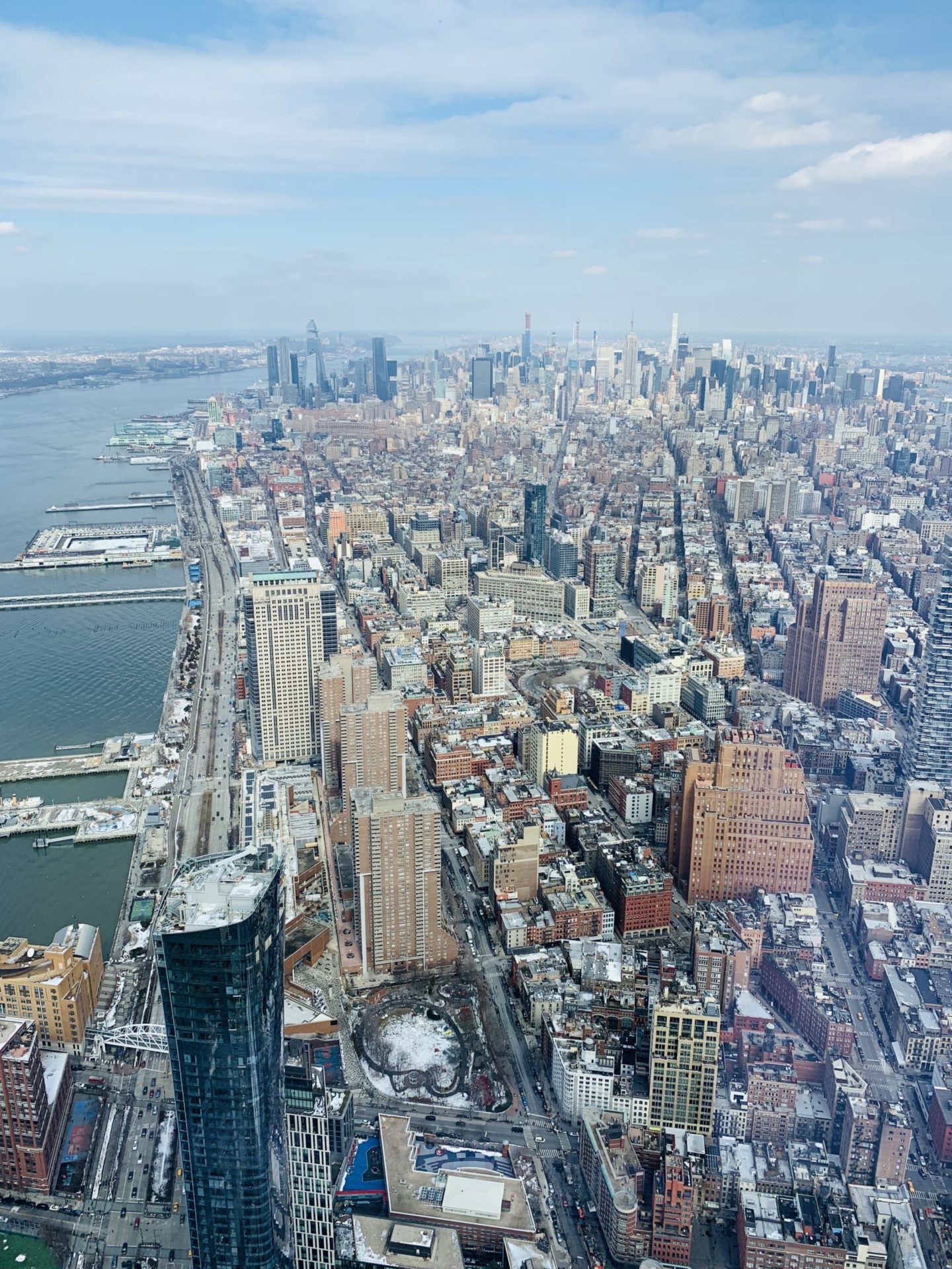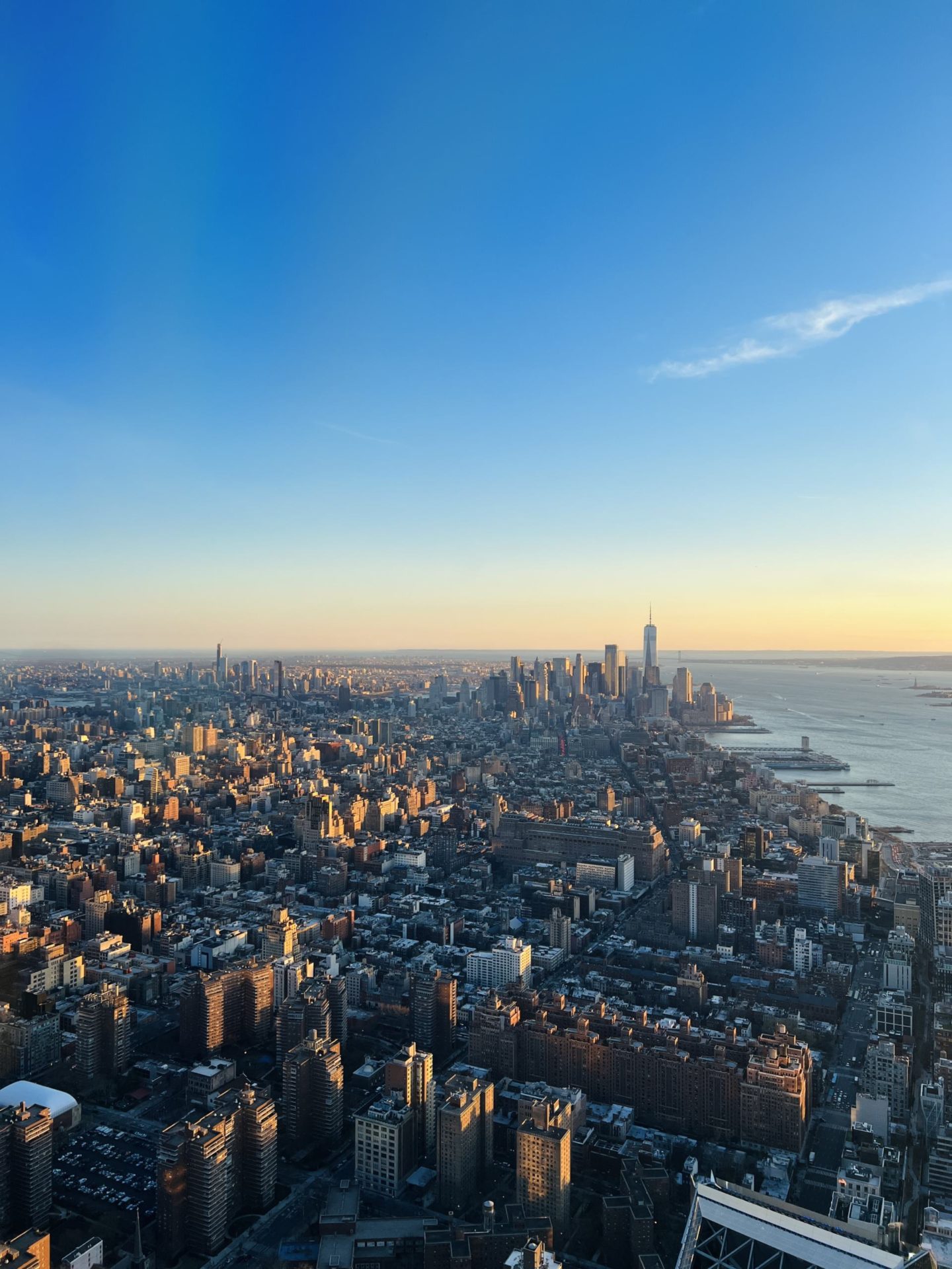 C’est l’observatoire le plus haut de NYC puisqu’il se situe au 100-102e étage du One World Trade Center, tout au sud de Manhattan dans le Financial District. On mesure vraiment l’immensité de Manhattan puisqu’on la voit depuis une extrémité. Par contre, on voit les buildings de Midtown vraiment au loin. Ce point de vue propose une expérience complète qui commence dès le passage du portique de sécurité. Je ne veux surtout pas vous spoiler pour ne pas vous enlever l’effet waou. Je vous parle juste de l’ascenseur. En montant, cela montre la vue des années 1500 à aujourd’hui. C’est impressionnant ! Si vous le faites de jour, c’est la vue de jour, si vous le faites la nuit, c’est une vue de nuit. Hyper réaliste. Une fois en haut, il y a un petit film devant des écrans géants, mais là je ne vous en dis pas plus. Juste, croyez-moi, ça vaut le coup !!! Il y a aussi beaucoup d’émotion forcément de se dire qu’à cet endroit-là en 2001, le monde basculait.