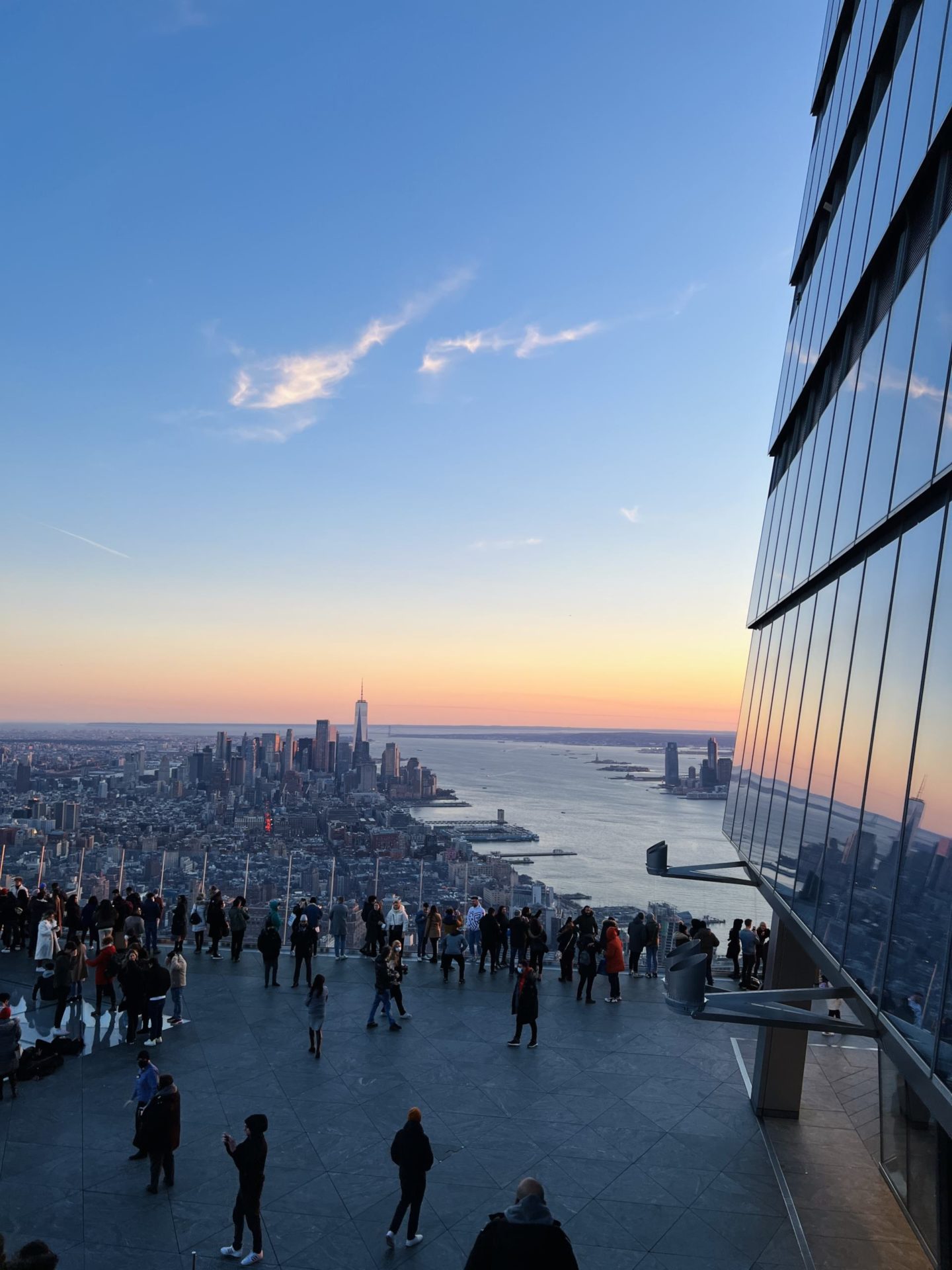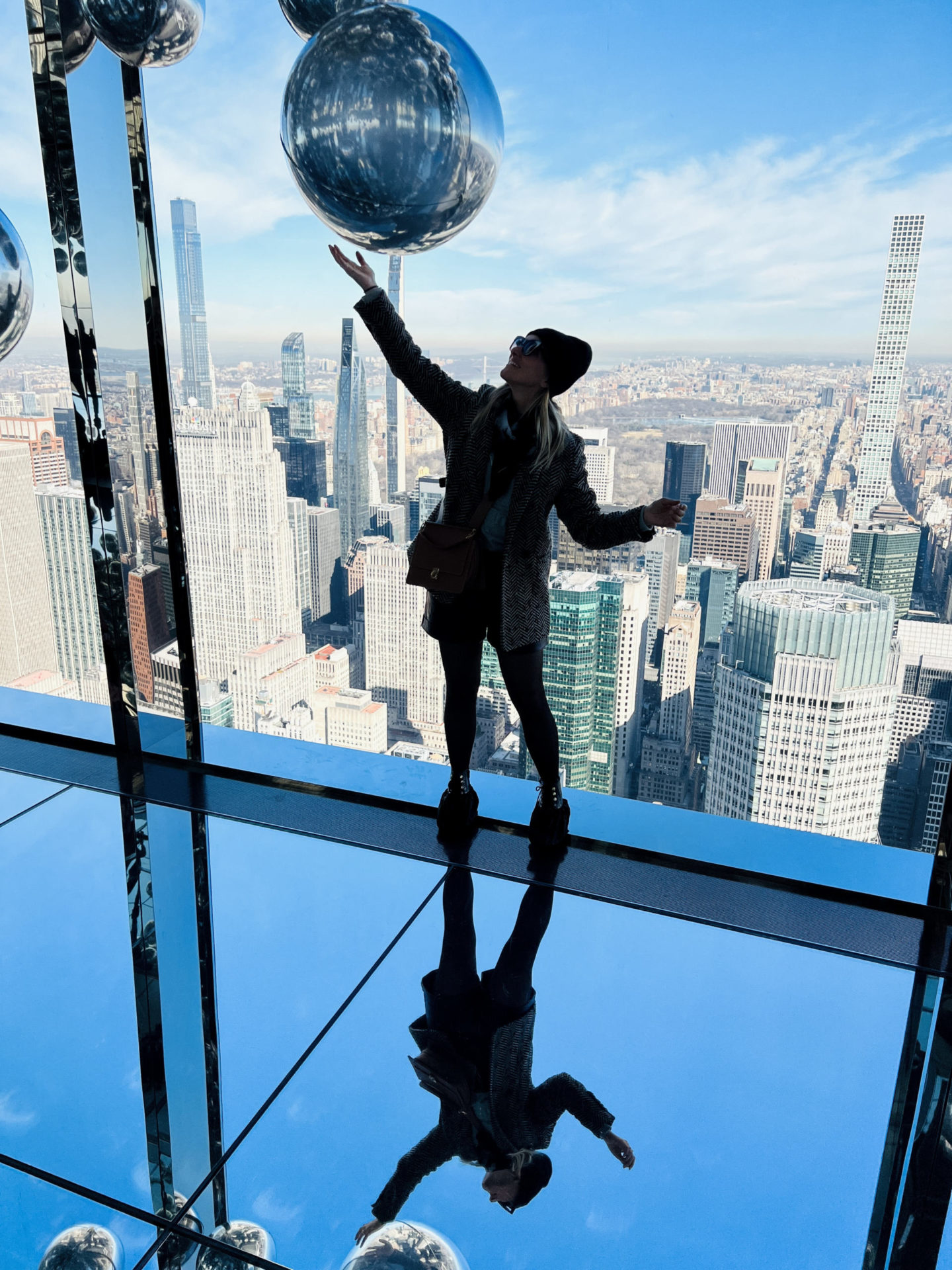 C’est là encore une expérience très complète et pas uniquement une terrasse sur un building. La montée est très sympa dès l’ascenseur. Une fois arrivé en haut, tout commence avec un étage complètement vitré qui donne de la profondeur et qui offre une vue incroyable sur l’Empire State Building et NYC de façon plus large. En montant d’un étage, on se retrouve avec une vue complètement vitrée et en miroir, c’est époustouflant. Ca donne vraiment une grandeur incroyable ! On peut vraiment avoir une vue à 260 degrés en se baladant. On retrouve aussi une salle ludique avec de gros ballons argentés gonflés à l’hélium et deux ex-croissances vitrées qui donnent la sensation d’être suspendu au-desus du vide. Sacré expérience ! A l’étage encore au-dessus, il y a une terrasse extérieure, puis un ascenseur totalement vitré (le plus haut de NYC) qui permet d’arrive vraiment au sommet de la tour. C’est vraiment une expérience complète, qui dure et qui offre une vue de tous les côtés, de très haut.