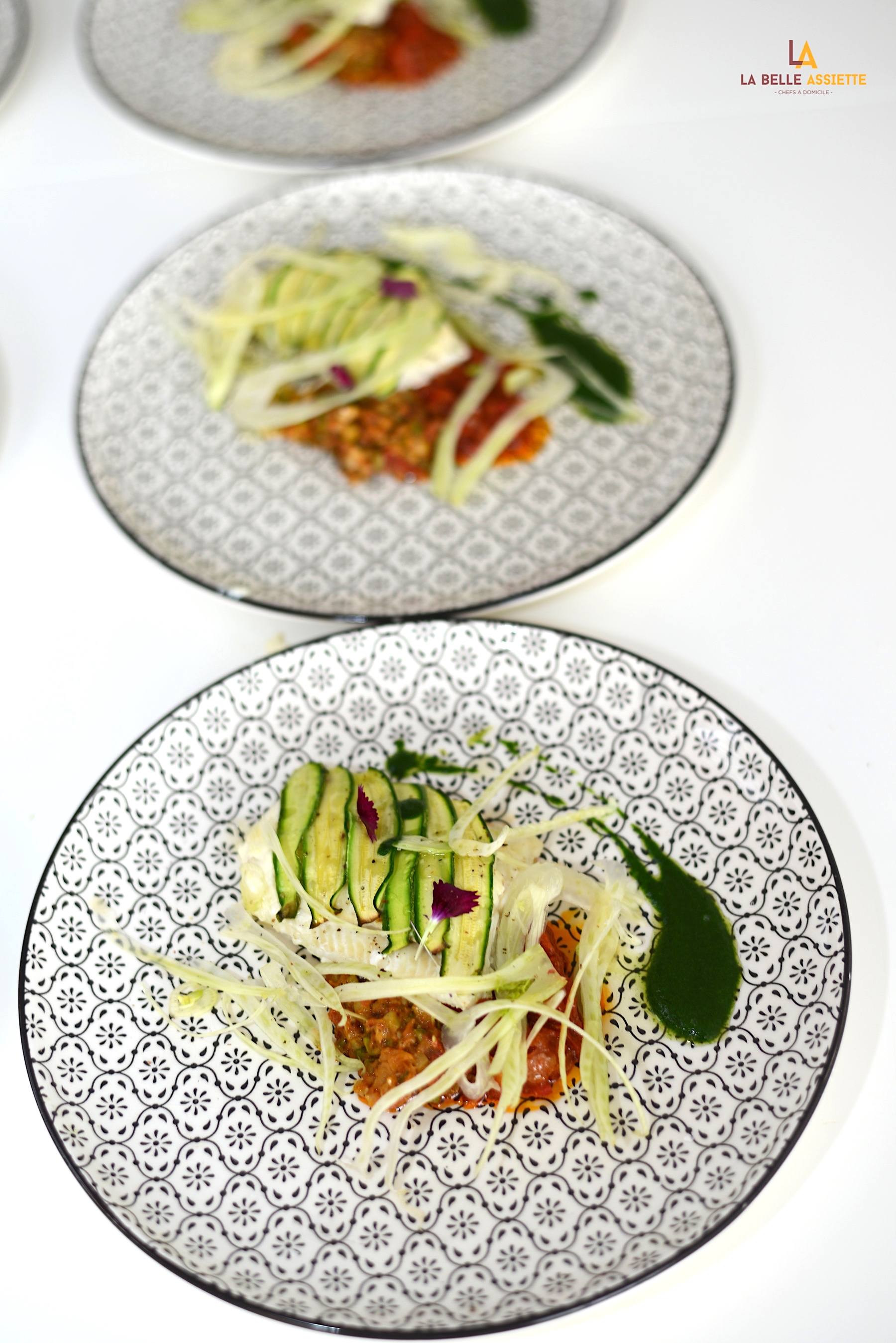 - Un plat : filet de loup façon belle niçoise, avec petite ratatouille et concassé de tomate