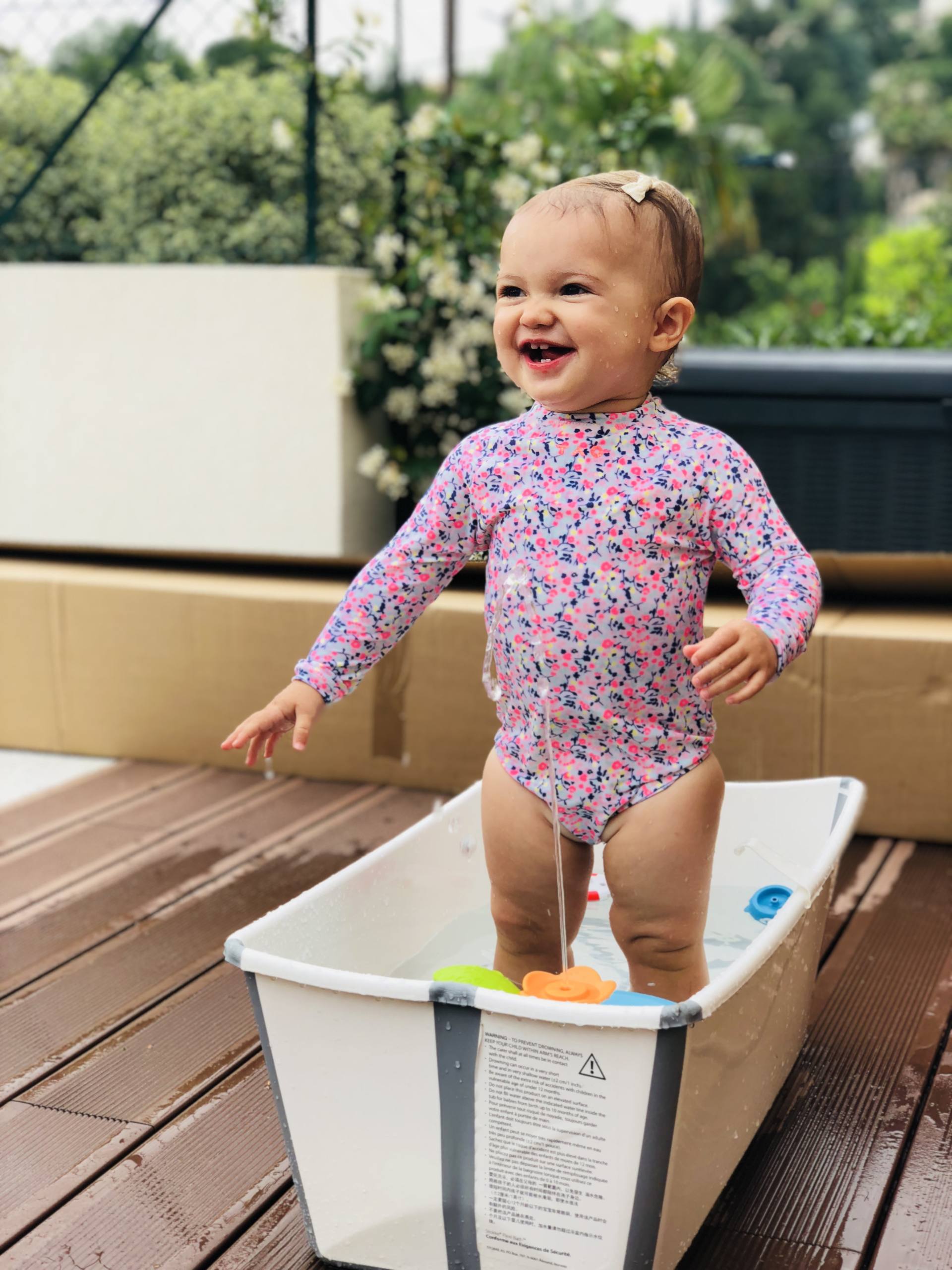 Évidemment, on en a profité pour faire quelques photos de ce bon moment, à garder en souvenirs comme toujours ! Louise s’est éclatée dans sa petite baignoire Stokke qui fait office de piscine sur la terrasse vu qu’on en a 2 ! Quant à moi, j’en ai profité pour demander à mon père de faire quelques photos pour vous montrer ma tenue qui est à la fin de l’article, et il s’avère qu’il s’est bien débrouillé ! Allez, je vous laisse avec toutes ces images, un vrai shot de bonheur !