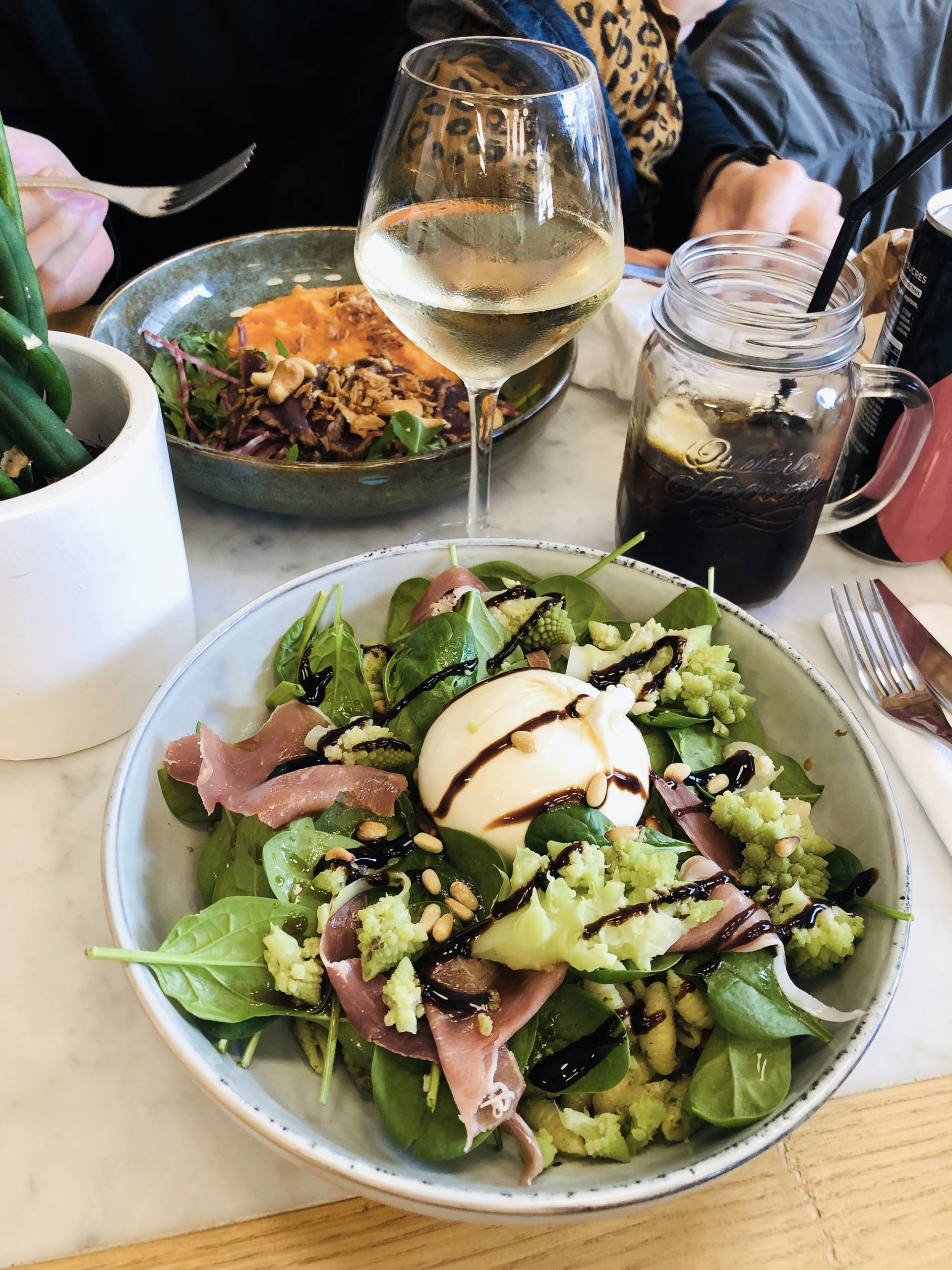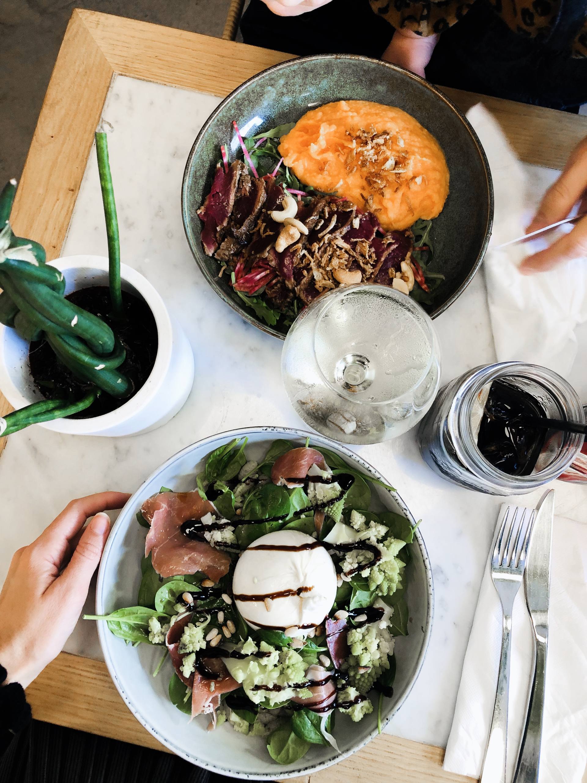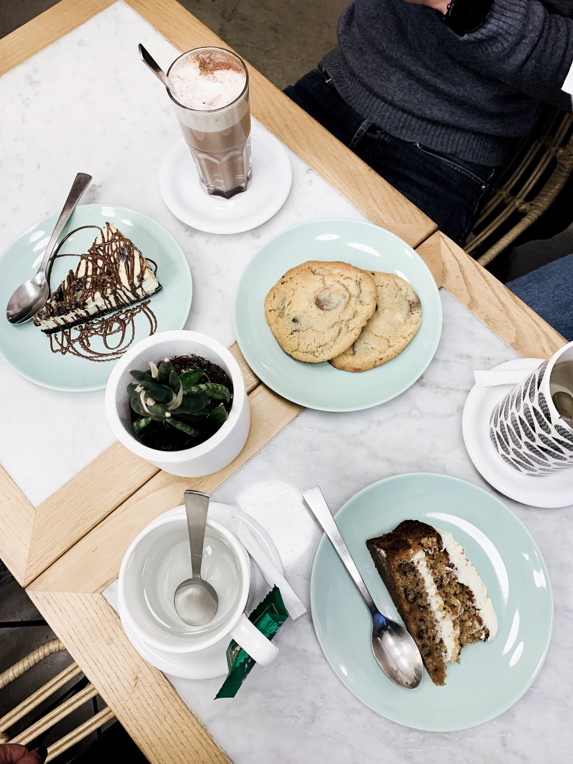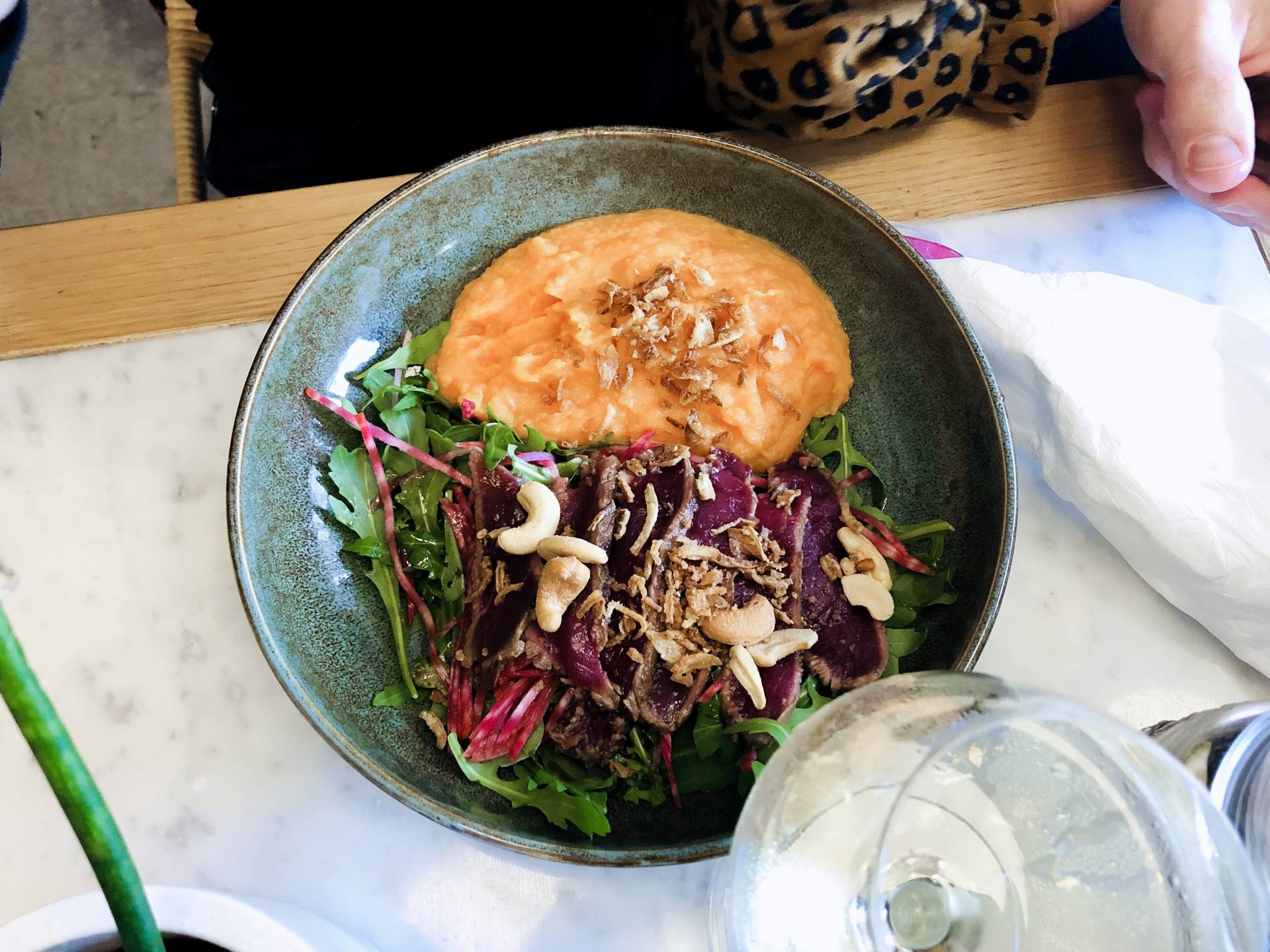 Et j’y suis retournée, deux fois déjà ! Avec Stéphane, deux jours avant Noël parce qu’il nous restait quelques cadeaux à faire. J’avais pris une salade à 12€, dé-li-cieuse ! Des mini-penne au pesto, du jambon de Parme, des pignons, du chou romanesco, des baies et des pousses d’épinards, j’avais adoré ! Steph avait pris un tataki de thon avec une purée de patate douce et c’était excellent, pour 14€ de mémoire. J’ai aussi un souvenir top du vin qu’on m’a servi au verre. On avait plus très faim pour un dessert (enfin, on avait prévu churros au marché de Noël !) mais ils nous avaient donnés envie donc on comptait revenir ! Pendant les soldes, petite session shopping où on a retrouvé un couple de copains pour le goûter. À nous 4, on a goûter cookie, cheesecake et carrot cake. Mon dieu ! TUERIE ! C’est clairement le meilleur cookie de Nice avec celui de chez Marinette aussi dont j’avais parlé ici ! Le carrot cake était super bon aussi, et le cheesecake, une merveille ! Les thés sont servis dans d’immenses tasses, je trouve ça cool !