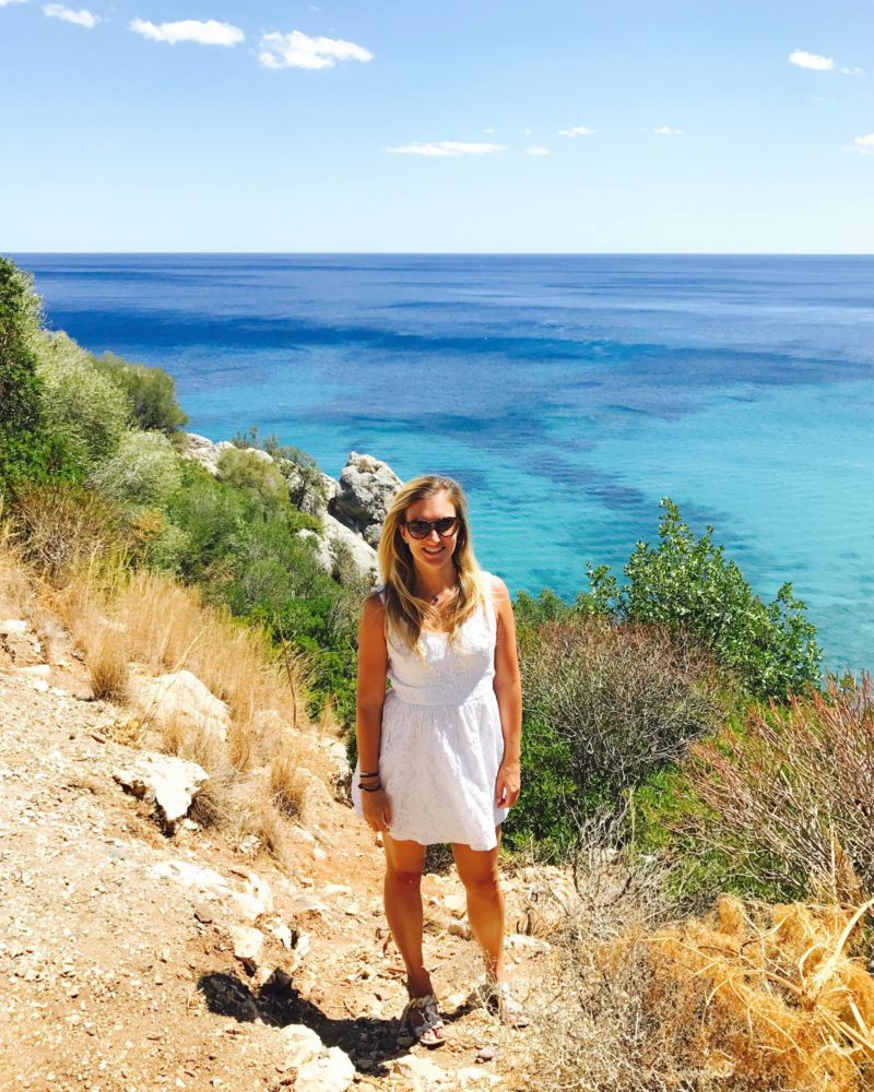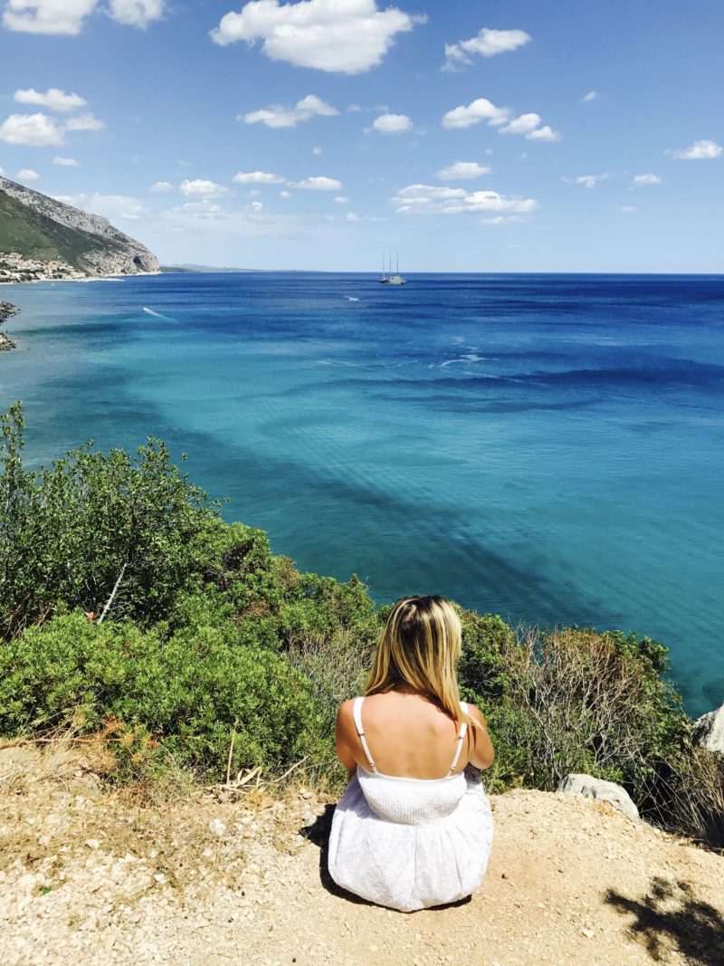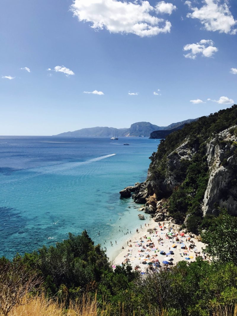 Pour la plage, avec Louise, on a du en choisir une assez facile d’accès ! On est allé à Cala Fuili ! Il y a un escalier à descendre et il faut marcher un peu mais c’était faisable ! Elle est en bas d’une falaise ! D’en haut, la vue et la couleur de l’eau sont à couper le souffle, ça vaut vraiment le coup ! Je vous conseille d’y aller tôt, vers 8h30, pour vous garer pas trop loin et surtout pour profiter d’une plage encore calme ! C’est le seul jour où on s’est loupé ! On est arrivé vers 11h15 donc on était garé à 800m de l’accès à l’escalier (et ça monte !), donc si vous avez le parasol et tout ce qui va avec, ça semble long ! En plus, une fois sur place, il y avait déjà pas mal de monde. En arrivant tôt, on s’assure de plus jolies vues encore aux alentours, sans les vacanciers !
