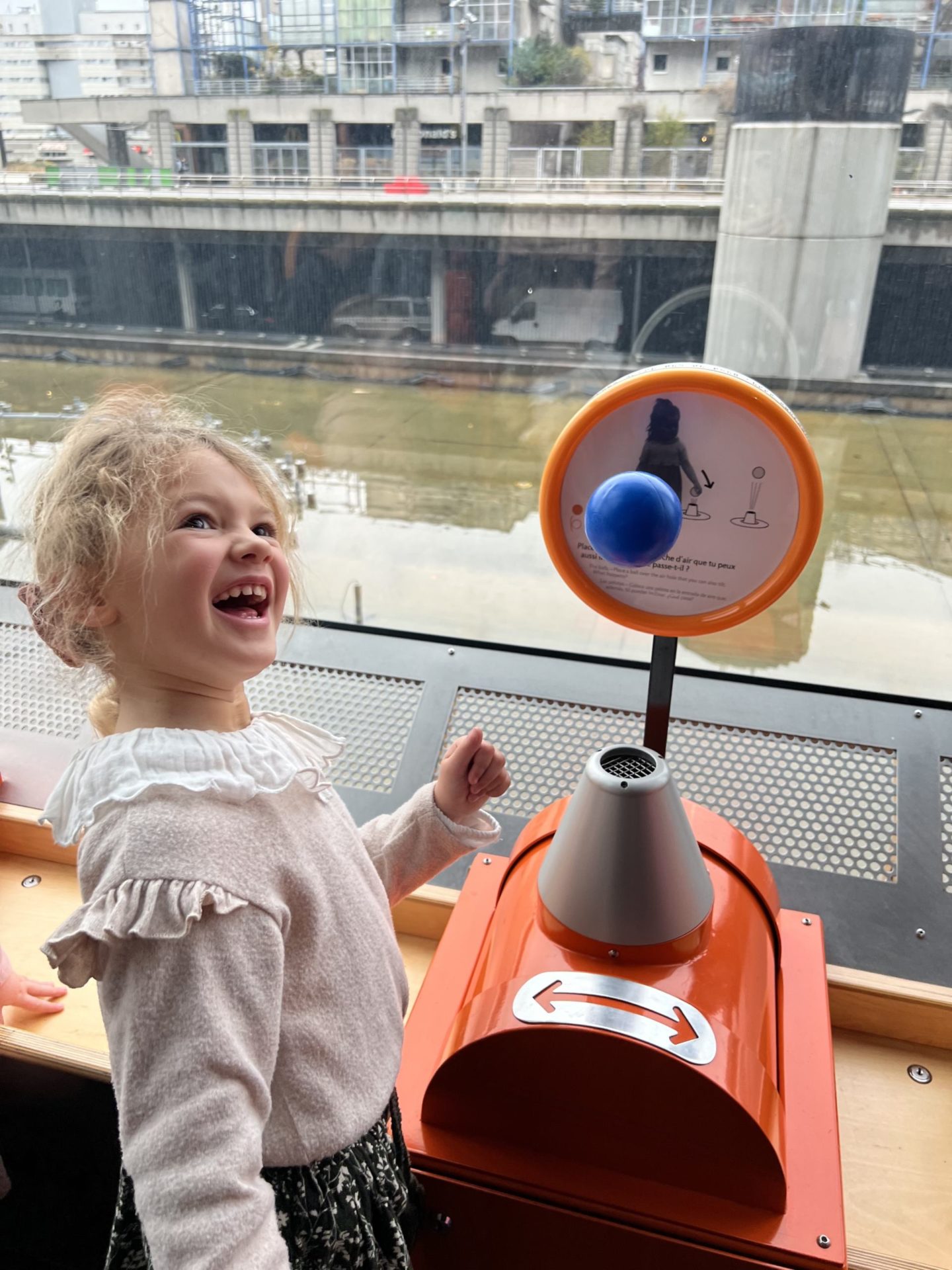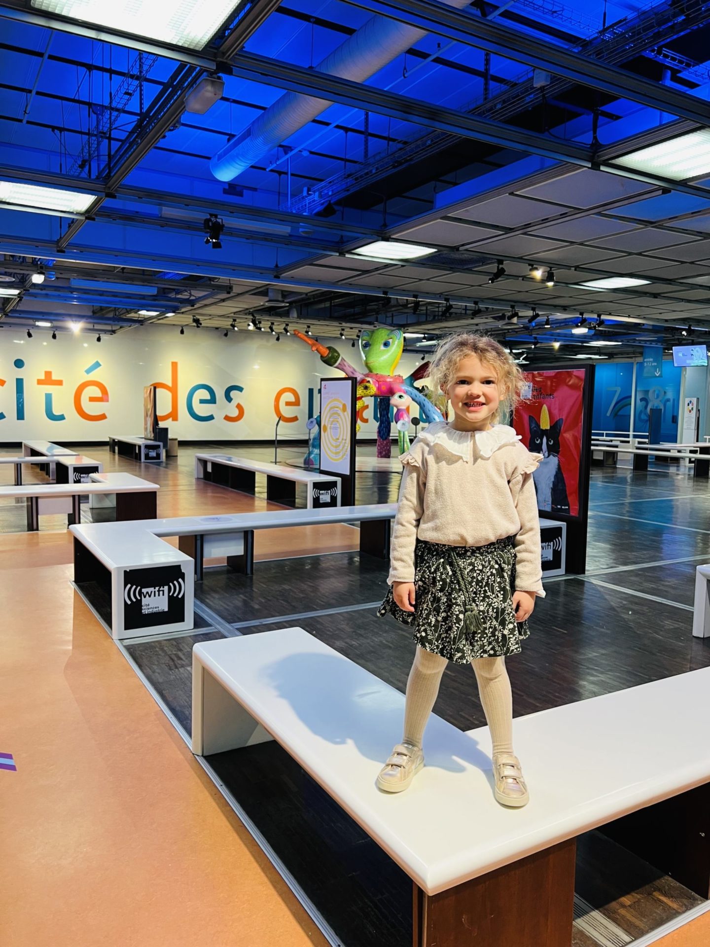 On a attaqué avec la Cité des Sciences. On a fait le parcours 2-7 ans et elle a beaucoup aimé. Il faut réserver un créneau horaire et la visite consiste à déambuler dans cinq univers. Motricité, expériences, jeux d’eau, repère dans l’espace, dessin numérique, émotions. C’était très intéressant, elle a bien ri ! Il faut compter 1h30 pour le faire. Pensez à avoir une pièce de 2€ pour mettre vos affaire dans un casier car il fait chaud ! C’est assez excentré, mais ça vaut le coup d’y aller !