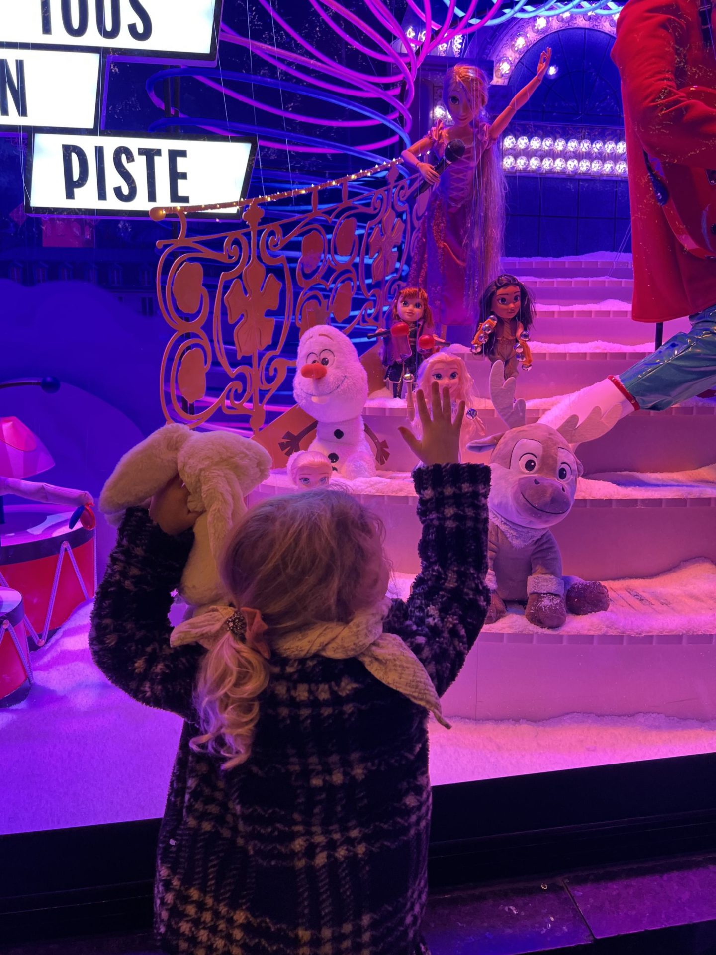 Nous avons fait un tour au Bon Marché. J’adore ce grand magasin, les vitrines de Noël sont toujours belles, l’espace kids est aussi très sympa et Louise s’est régalée à regarde les livres, l’espace beauté pour enfants ! On est restés pour y déjeuner avant de partir pour la Tour Eiffel. Là aussi, il faut réserver un créneau. C’était magique. Louise était impressionnée, elle a trop aimé prendre l’ascenseur, la sortie dans le froid, puis le sommet. C’est spectaculaire, ça fait son effet !