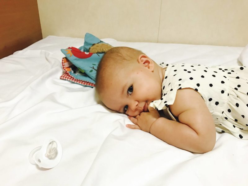 Globalement, ça a plutôt bien fonctionné mais forcément, Loulou a été un peu fatiguée par moment. Je pense que privilégier une sieste est indispensable. Un bébé fatigué, c’est un bébé qui râle, qui chougne, qui pleure, qui veut des calins, c’est le meilleur moyen de ne pas profiter ! C’est même arrivé qu’on dorme avec elle car la différence avec nos vacances en couple, c’est qu’avec un bébé, tu es en action non-stop du matin au soir ! Car oui, avant de sortir le soir, il faut se doucher, s’habiller, se préparer, mais aussi la baigner, l’habiller, la préparer, la porter, l’attacher dans son siège, refaire le sac, nettoyer le biberon, son bol, penser à prendre assez de lait, refaire le plein d’eau. En fait, c’est une sollicitation permanente !