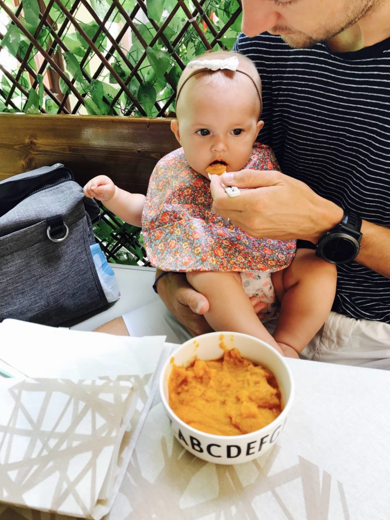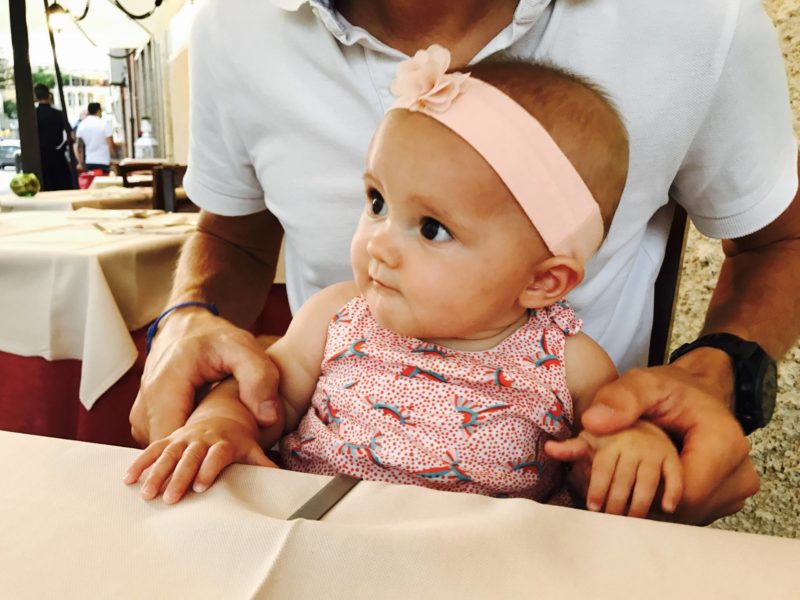 • Aller au restaurant : OUI, c’est possible d’aller au restaurant avec son bébé de 6 mois. Par contre, c’est pas de tout repos. N’imaginer pas que vous allez la poser dans sa poussette comme à 2-3 mois ! Elle va vouloir jouer, se lever, regarder sur la table, goûter, toucher. On la faisait participer à nos repas, et dès que possible, on demandait une chaise haute pour l’avoir à notre hauteur !