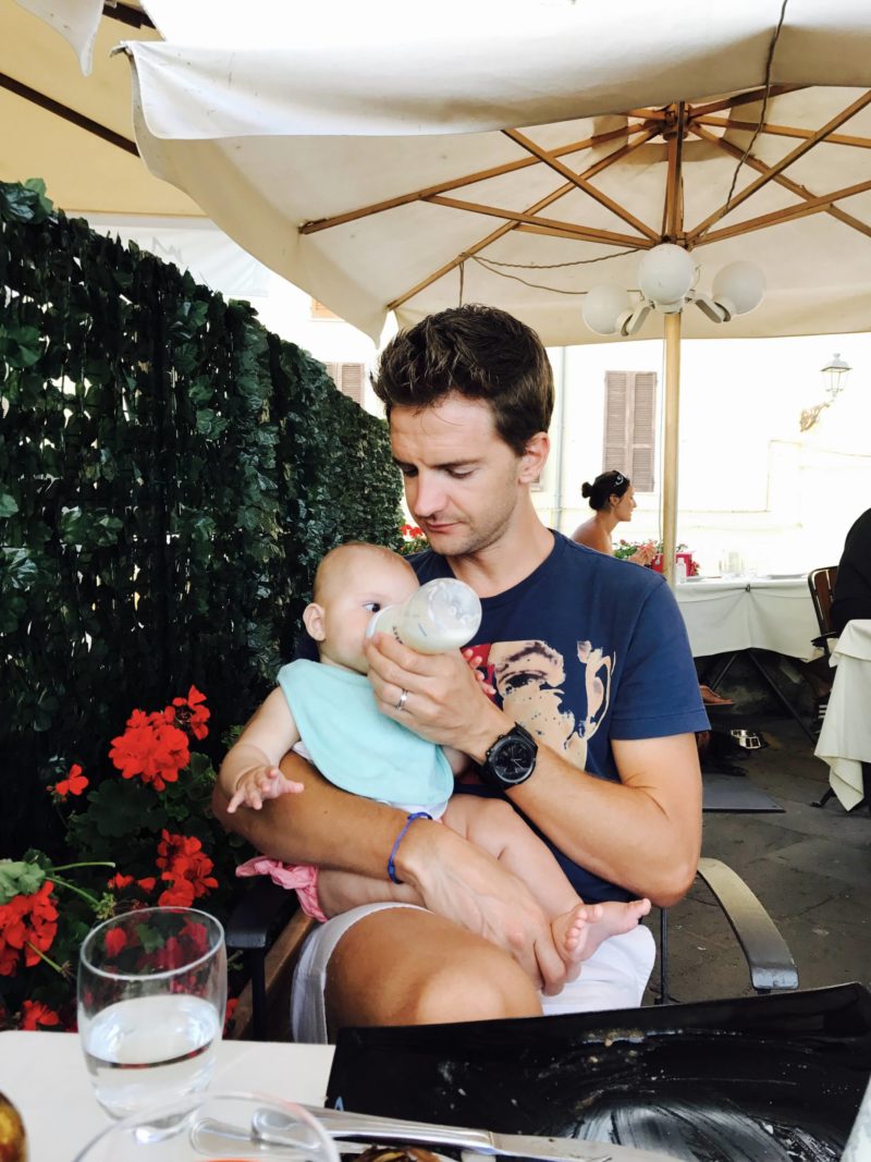 C’est là où c’est le plus différent de nos vacances en couple. Pour la simple et bonne raison qu’un bébé a une vraie horloge dans la tête ! Réveil vers 7h-7h30, biberon à 8h, repas à 12h, goûter à 16h et biberon vers 20h. Impossible de la décaler et on ne souhaitait pas le faire après avoir mis des semaines à la régler correctement ! De toutes façons, même quand elle se décale d’une heure, voire de 2, ça ne décale pas le repas suivant en général.