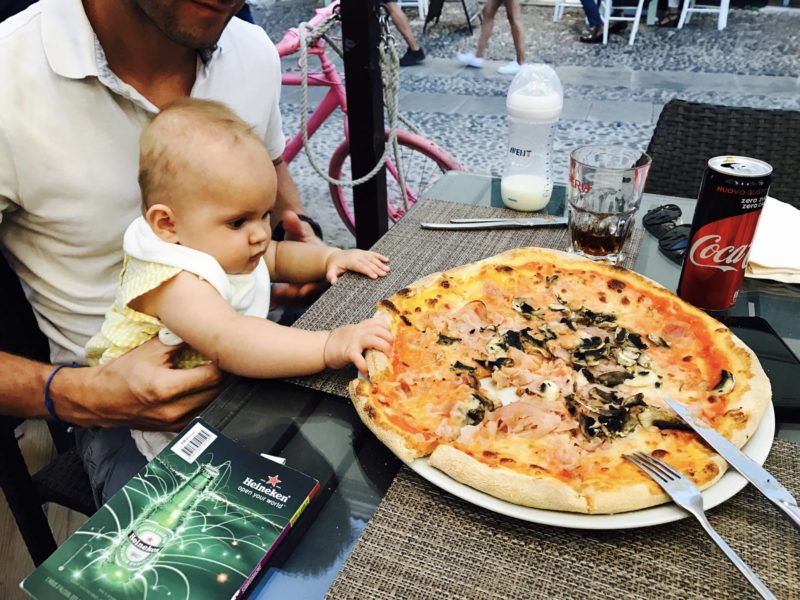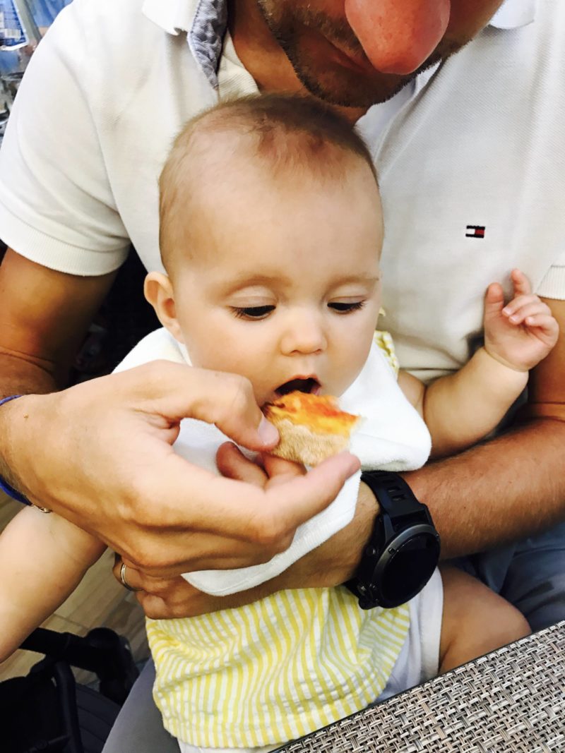 • Taper dans la pizza et manger des glaces ? CHECK … Je suis exigeante avec l’alimentation de Louise, j’ai envie de lui donner le meilleur. Mais j’ai aussi envie de lui donner l’envie de goûter, de se régaler, d’aimer manger. Alors oui, elle a goûté la glace au chocolat de Papa, la sauce tomate de la pizza de Maman. Elle a testé la farce des pâtes ricotta-menthe, elle a goûté mon smoothie et c’est en Sardaigne qu’elle aura mangé son premier morceau de pain !