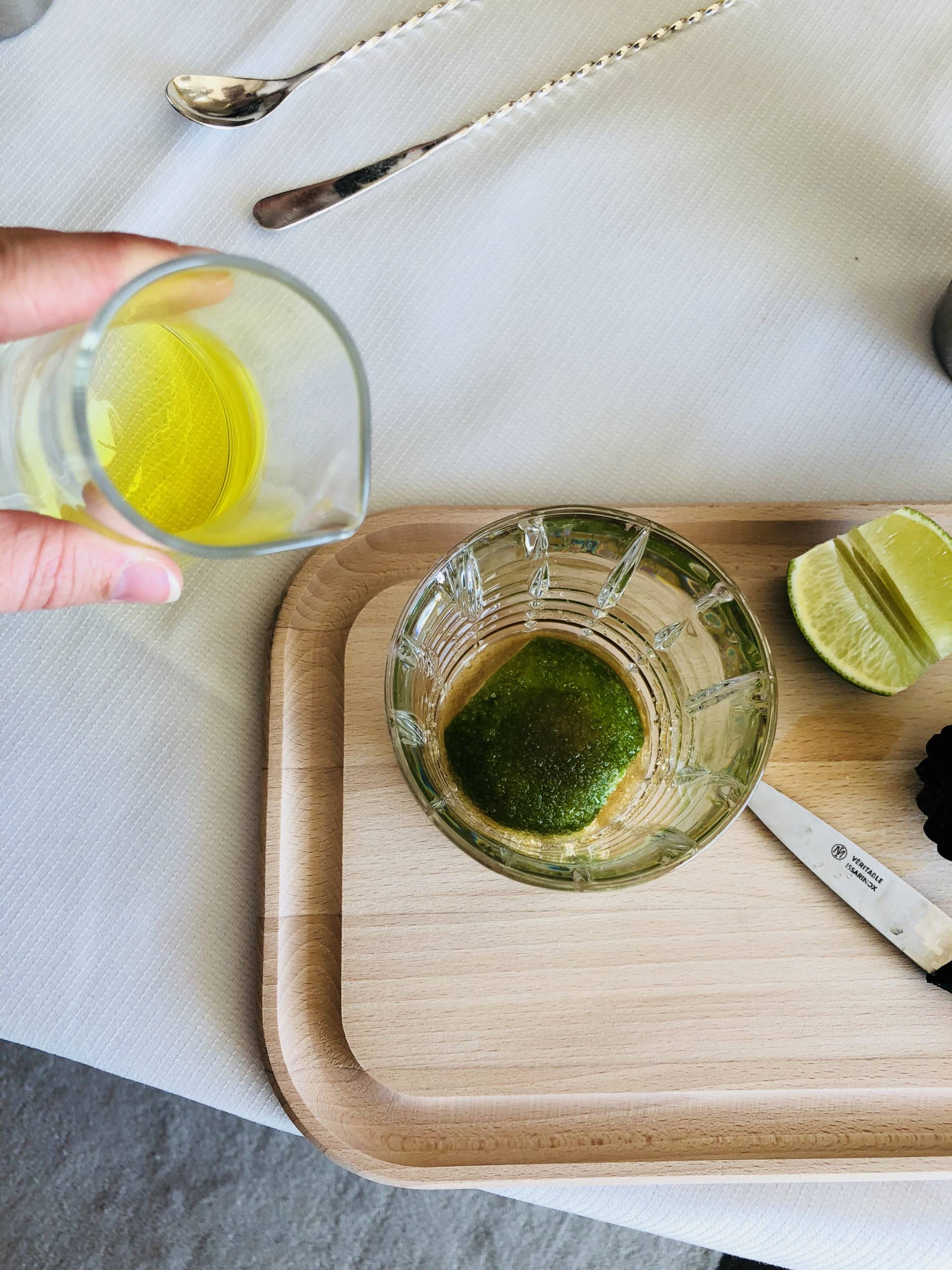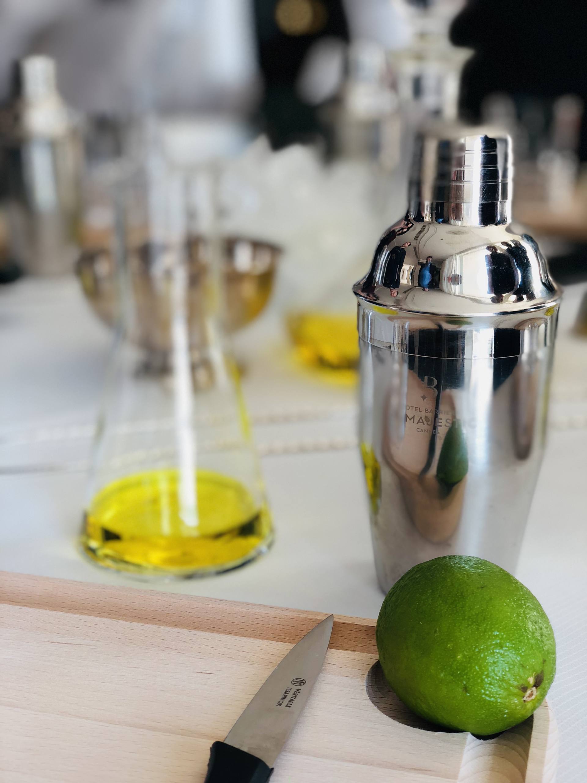 En arrivant sur la Côte d’Azur, les occasions de sortir sont encore plus nombreuses. Il fait beau, il fait bon une bonne partie de l’année et il y a beaucoup d’établissements ! Même si j’aime toujours autant le mojito, j’ai un peu plus l’occasion de tester des cocktails différents, plus originaux et atypiques. Récemment, j’ai été conviée par le Majestic à Cannes pour rencontrer Emanuele Balestra, le barman de l’hôtel. Plus qu’un barman, c’est un créateur. Il a une connaissance parfaite des fleurs, des fruits, des alcools. Il a énormément voyagé et sa culture est immense. Surtout, il est exigeant sur les matières premières et est passionné par les autres. J’ai senti, quand il parlait cocktails que son but ultime est de faire plaisir à la personne qui sera servie. J’ai été épatée par son sens du détail. Il a fait planter ses propres herbes aromatiques et plantes dans les jardins du palace, il a un atelier où il fabrique lui même ses bitters naturels pendant des mois et il utilise des fleurs et herbes aromatiques locales pour travailler. En tant qu’amatrice, j’étais ravie de pouvoir tout d’abord goûter un cocktail issu de son premier livre « Majestic Cocktails » : la Grande Dame, un Champagne mélangé à 1cL de gin et à 2cL d’eau de verveine réalisée par lui-même. J’ai ensuite réaliser un cocktail à ses côtés, qui plus est dans une magnifique suite avec une vue exceptionnelle ! Il nous avait préparé un cocktail à base de vodka infusée au safran, de citron vert, de sucre roux, le tout avec beaucoup de glaçons. J’ai notamment appris que pour utiliser le citorn vert, il faut enlever la partie blanche au centre qui donne de l’amertume ! Intéressannt pour de futurs mojitos sur la terrasse ! Sur le coup, quand j’ai entendu « safran », j’étais sceptique. Puis finalement, on a shaké, versé dans un joli verre et c’était délicieux. Il nous a d’ailleurs conseillé de mettre beaucoup de glaçons dans un cocktail pour que les glaçons fondent moins vite. Logique mais je n’y avais pas pensé. Le juste équilibre, la fraîcheur, c’était superbe ! Je suis de plus en plus tentée de goûter des cocktails signature pour découvrir de nouveaux alcools même si je ne les apprécie pas forcément de base.