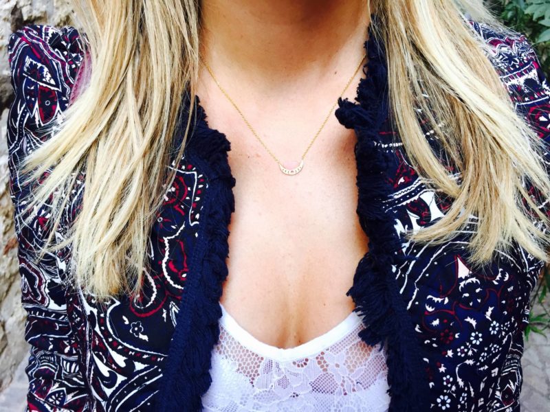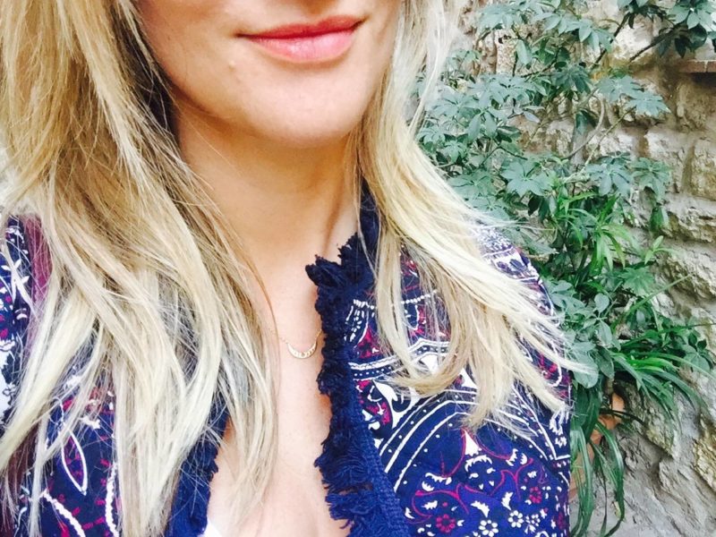 Ici, la rentrée, c’est pas vraiment la rentrée au niveau de la météo, c’est plutôt la fin de l’été. Il fait encore beau et chaud donc les jambes sont toujours dénudées mais on commence à avoir envie de porter des petites vestes par exemple. Oui oui, ce truc qu’on aura envie de jeter par la fenêtre dans quelques semaines à peine mais on sera obligé d’en porter vu qu’il fera froid ! Bref … J’avais envie de porter ma nouvelle petite veste shoppée quelque jours auparavant chez Kiabi et qui a bien plu autour de moi et sur Instagram ! Du coup, pour ce petit lunch du dimanche midi, je portais un de mes shorts préférés du moment issu de la nouvelle collection Mango. J’adore ce petit côté romantique avec les arrondis sur les jambes, ça donne un côté petite fille sage, comme les cols Claudine ! Avec ce short, je portais un top H&M que j’ai depuis très très très longtemps mais que j’aime bien porter pour les jours cool (ou pour les jours où tous tes tops préférés sont en train de sécher ou d’être lavé !). Et finalement, j’ai rajouté ma nouvelle petite veste à motifs aux couleurs plus automnales avec du noir, du bleu marine, du bordeaux et du blanc ! Vous la trouvez comment vous ? Vu qu’il fait bon et qu’il y a toujours du soleil, évidemment, la paire de lunettes et les sandales s’imposent ! Mais j’ai quand même un sac d’automne, donc ça compense non ?