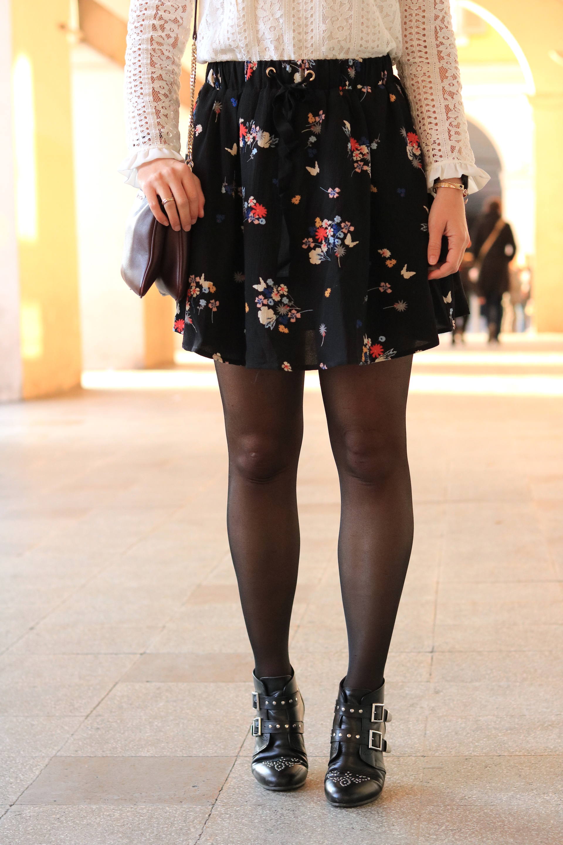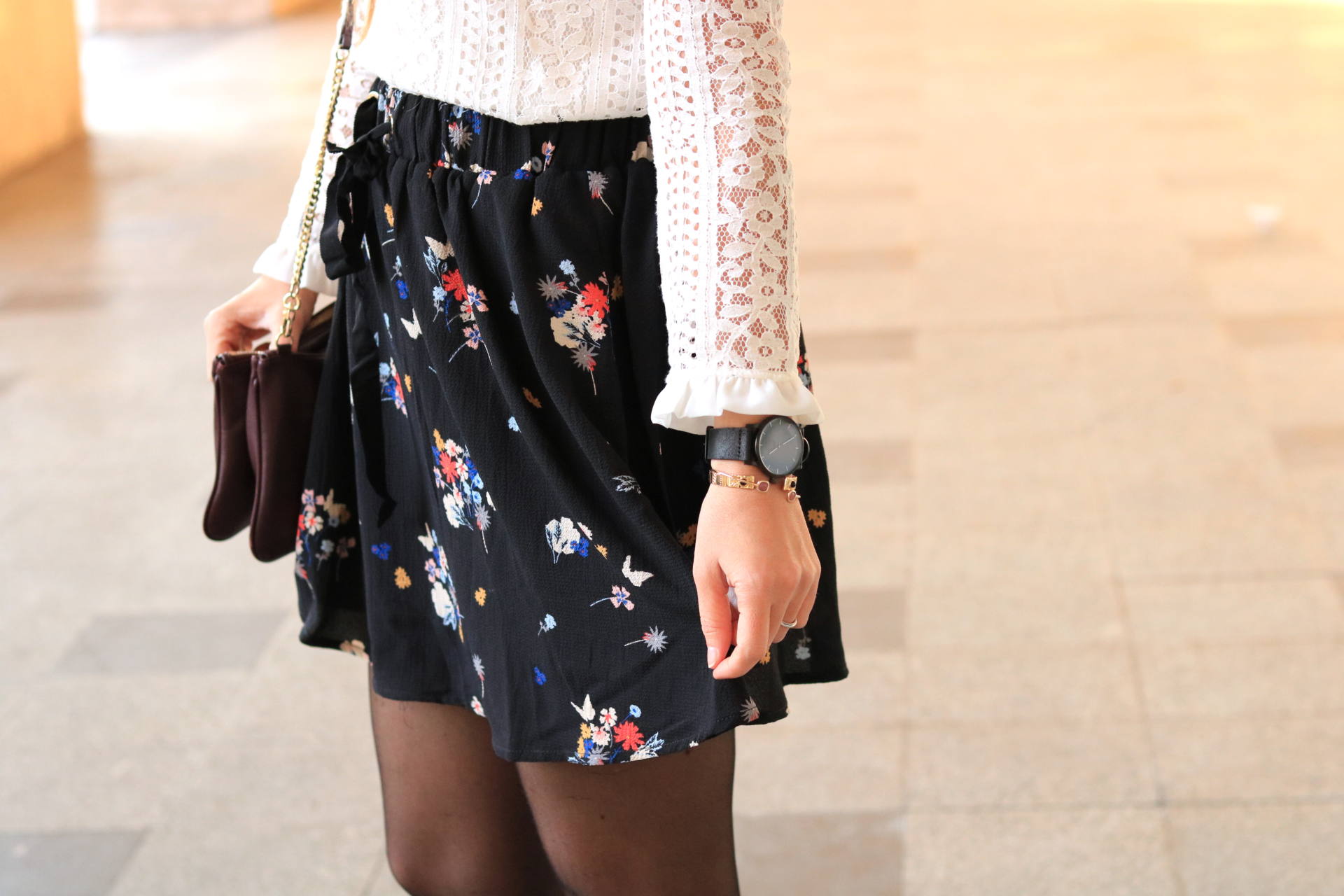 Il y a comme un air d’été dans cet article. Ok, je m’emballe vite, un petit air de pré-printemps je voulais plutôt dire ! J’ai passé quelques commandes de vêtements récemment, des pièces dont j’avais vraiment envie, besoin (oui oui !) ou qui m’ont fait craqué. J’achète de plus en plus en ligne car je vais moins dans les magasins avec Louise ! Mais j’ai l’impression d’avoir un choix bien plus grand et j’aime bien pouvoir essayer tranquille et renvoyer si ça ne me va pas. Le problème est que je renvoie assez peu ! Exception faite aujourd’hui avec une commande Zara car j’ai commandé un jean immense. Vous avez été tellement nombreuses à m’encourager sous la photo instagram que j’ai postée la semaine dernière que j’ai eu envie de tenter d’essayer de nouveaux jeans, de nouvelles coupes ! Mais là, je me suis largement plantée de taille ! En attendant, j’ai reçu récemment cette petite jupe volante et j’avais craqué sur le site donc elle a filé tout droit dans mon panier. Elle a tout pour me plaire : la coupe, le joli motif et la matière. En plus, l’avantage est qu’elle peut se porter en ce moment avec des collants, mais je pourrai aussi la porter sans problèmes au printemps ou cet été, jambes nues ! Vous pensez à ça vous aussi quand vous achetez une pièce ?