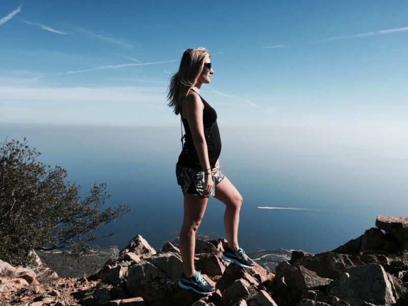 Du parking, on est allé jeter un oeil sur le panneau pour voir le trajet de la randonnée. Vu que je suis enceinte, on avait pas prévu de faire de détour d’une heure si vous voyez ce que je veux dire ! Du coup, c’est parti pour le sentier bleu. Dès le début, on marche sur de la roche, c’est très caillouteux donc prévoyez des baskets, n’arrivez pas en sandales sous prétexte qu’on est tout près de la mer ! La montée a duré environ 1h à mon rythme, donc pas très rapide ! Une fois en haut, il y a un premier panorama puis un second tout en haut quand on arrive à la table d’orientation ! Il y avait un peu de monde vu que c’était un pont de 4 jours, mais si vous y allez hors-saison, ce sera peut-être plus calme ! En tous cas, c’était la bonne saison pour y aller, on s’est régalé et on a pas souffert de la chaleur, mais on a eu chaud quand même, en short et débardeur pour un 31 octobre ! Bon, j’ai quand même eu un gage : arrêter de parler pendant 5 minutes ! Et pour la petite anecdote, on a croisé un homme qui ne comprenait pas pourquoi je lui faisais coucou pour lui dire bonjour 🙂