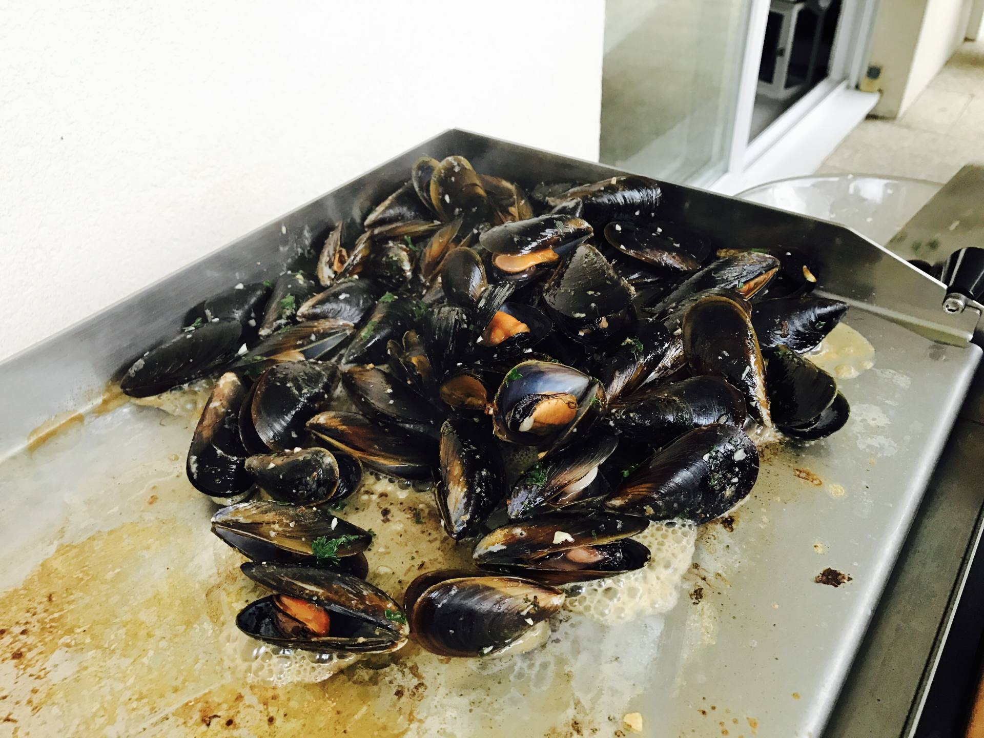 Le must de l’été, ça reste les moules-frites ! Alors on a aussi goûté les moules au barbecue. Hyper simple, de l’ail, du persil, des moules, un filet d’huile d’olive, on les laisse tranquillement s’ouvrir. On aurait pu rajouter un peu de vin blanc d’ailleurs, ce sera pour la prochaine fois ! Attention, si certaines ne se sont pas ouvertes, ne les mangez pas !