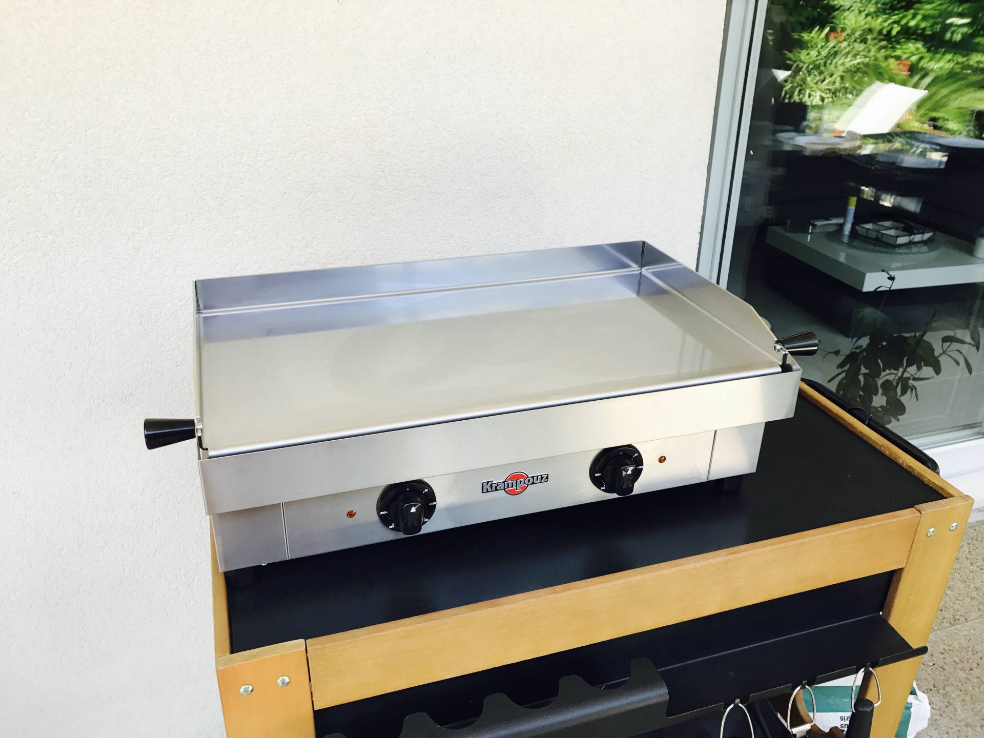 Dis-moi on cherche une plancha, mais électrique. Celle de ton papa est-elle a gaz ou électrique ?