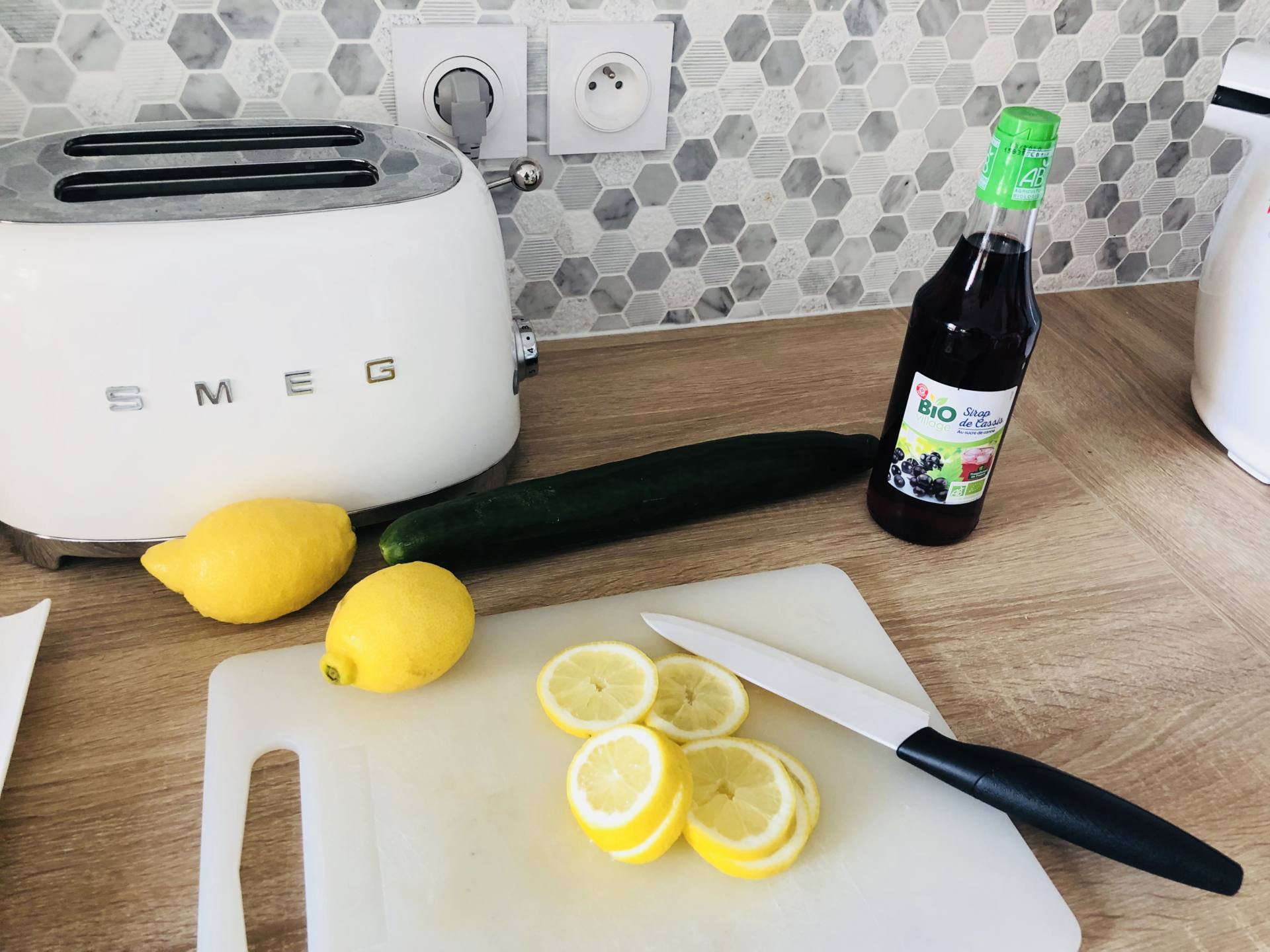 Mettre une grande quantité d’eau froide dans un pichet ou une jarre, ajouter des glaçons, des citrons, du concombre et pourquoi pas de la menthe fraîche si vous en avez. Très rafraîchissant ! Au dernier évènement Bio Village, il y avait cette même boisson avec un peu de sirop de cassis ! C’était hyper bon ! J’en ferai souvent cet été je pense !