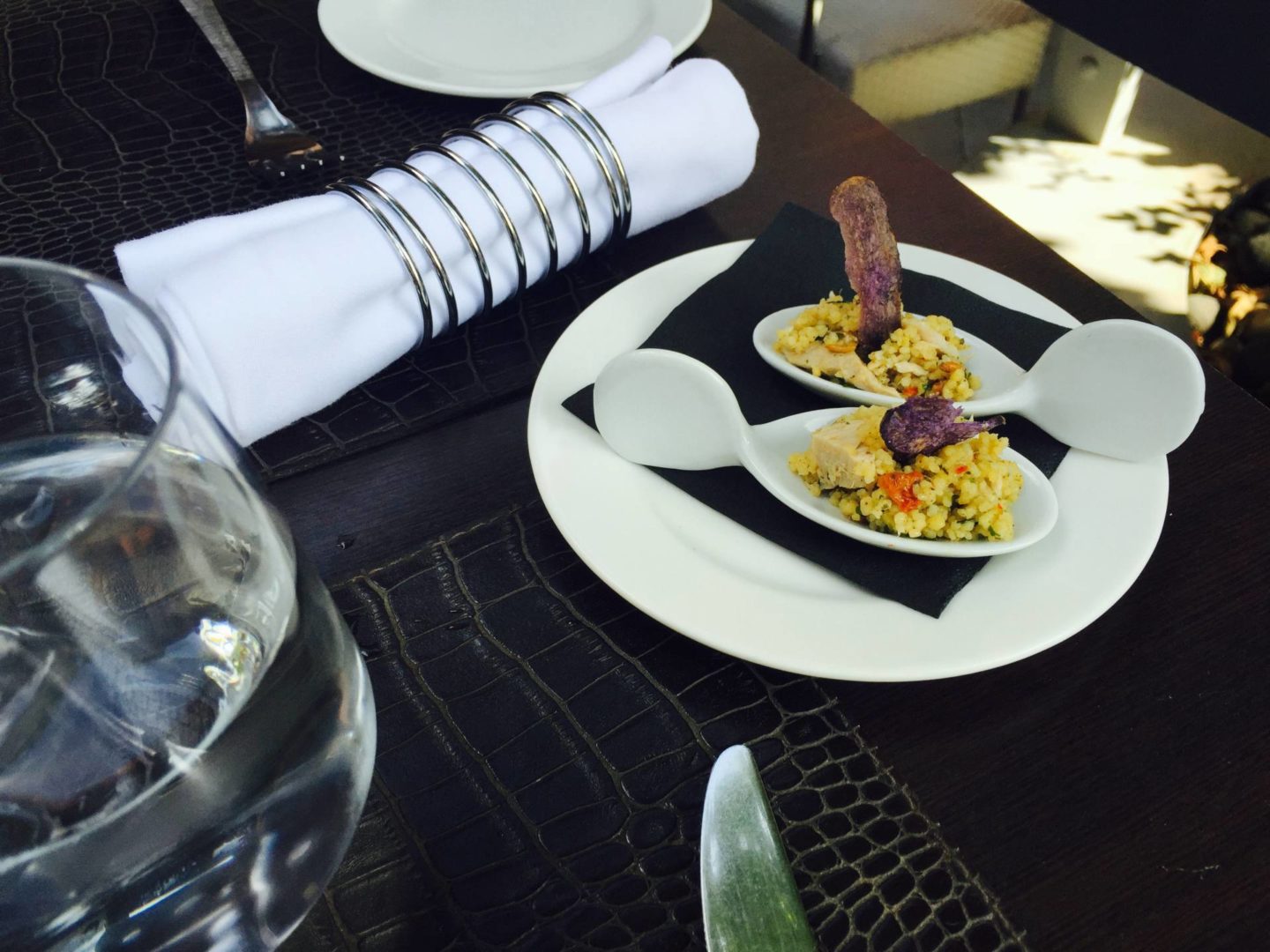 C’est un restaurant de poisson de Cagnes sur Mer, à 10 kms de Nice : la Cabane de l’écailler. C’est plutôt un restaurant haut de gamme, mais le midi, ils ont une formule plat + dessert qui donne envie de goûter à leur cuisine. Et ce midi, pour nous, c’était la formule plat + dessert à 17€. Rien qu’en entrant, on sent tout le bénéfice de la pause déjeuner : une jolie cour, un arbre qui trône au milieu, le soleil qui passe à travers les feuilles et la façade couleur argile qui évoque le sud ! Bref, autant vous dire que l’endroit est parfait pour un lunch entre filles, tranquille ! Ce midi, c’était filet de dorade, frite de risotto et petits légumes de saison. Et en dessert, smoothie de fruits frais. On s’est régalées, détendues … et on reviendra très vite !
