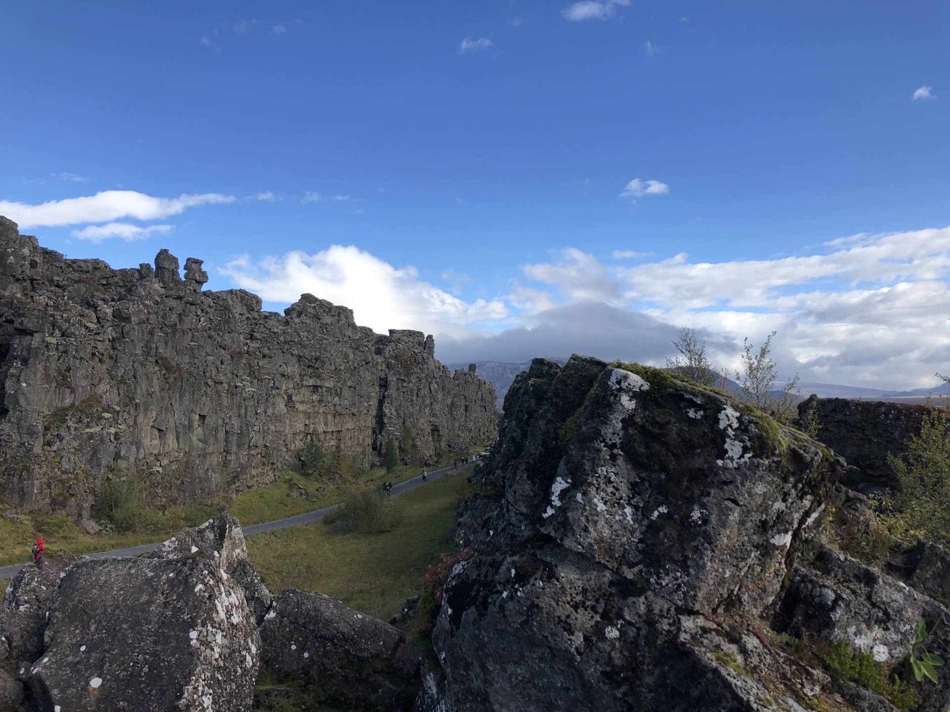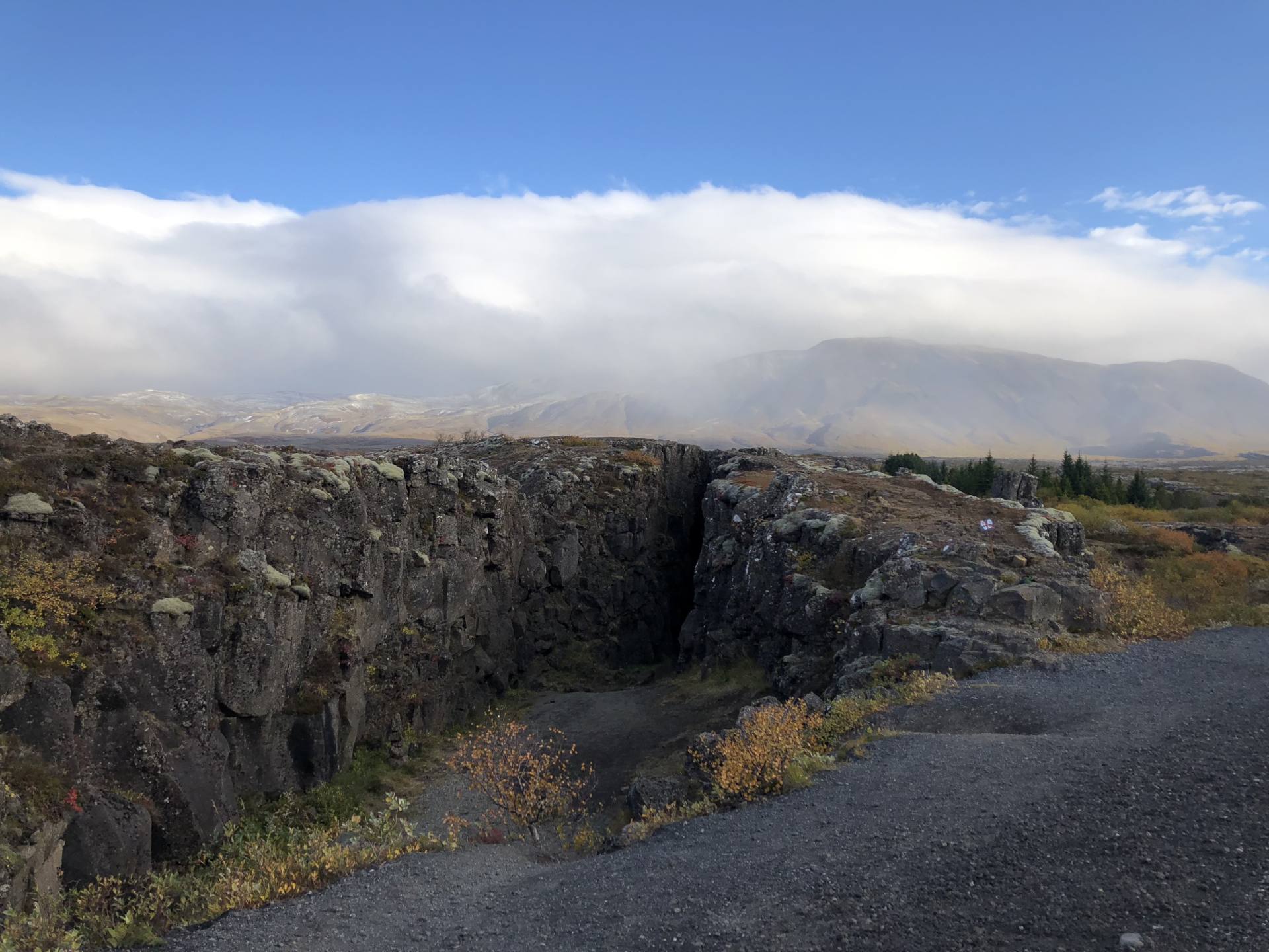 C’est le premier arrêt de ce road-trip islandais ! C’est proche de Reykjavik donc plutôt touristique. C’est un lieu important puisque c’est l’ancien site du Parlement et c’est ici qu’a été signé la déclaration d’indépendance de l’Islande en 1944. C’est surtout parce que c’est un site archéologique exceptionnel qu’on a eu envie d’y aller. C’est l’endroit où se rencontrent deux plaques tectoniques : celles de l’Amérique du Nord et celles de l’Eurasie. D’ailleurs, il y a un spot de plongée où on peut, une fois sous l’eau, être au contact des deux plaques. Ca me donnait très envie avant de partir en Islande puis on s’est ravisé parce que ce jour-là, il faisait un froid vraiment rude ! On est allé voir la cascade Oxararfoss et on a longé la faille à pied. C’est vraiment beau.
