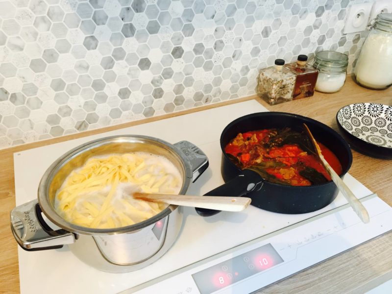 – Avant la fin de la cuisson, faire chauffer de l’eau salée et cuire les pâtes fraîches pendant 3 minutes.