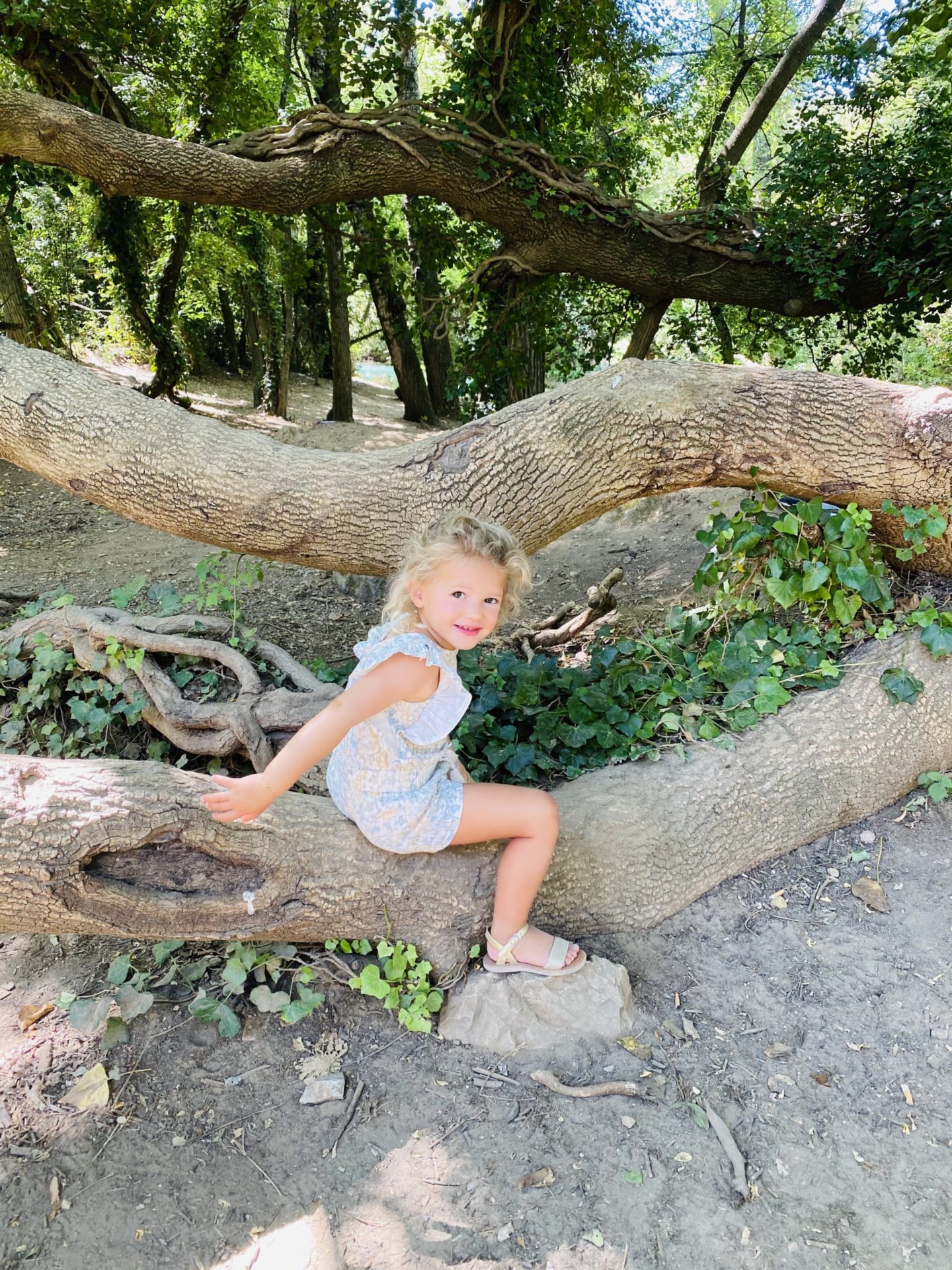 Cette première ballade à Sillans-la-Cascade dure environ 40 min aller-retour. C’est un sol type chemin caillouteux. On avait la poussette car on avait pas prévu d’aller se balader, mais je vous recommande le porte-bébé et de bonnes baskets car sur la fin du chemin, ça descend et ça glisse pas mal. Une fois en bas, on peut longer la rivière et voir de superbes bassins d’eau turquoise. Des troncs et des pierres permettent d’aller au milieu de l’eau ! On peut s’y baigner. Les abords sont terreux donc prévoyez une rabane ou prenez de vieilles serviettes ! Personnellement, je trouve que c’est plutôt un endroit à découvrir en se promenant qu’un spot baignade ou pic-nic !